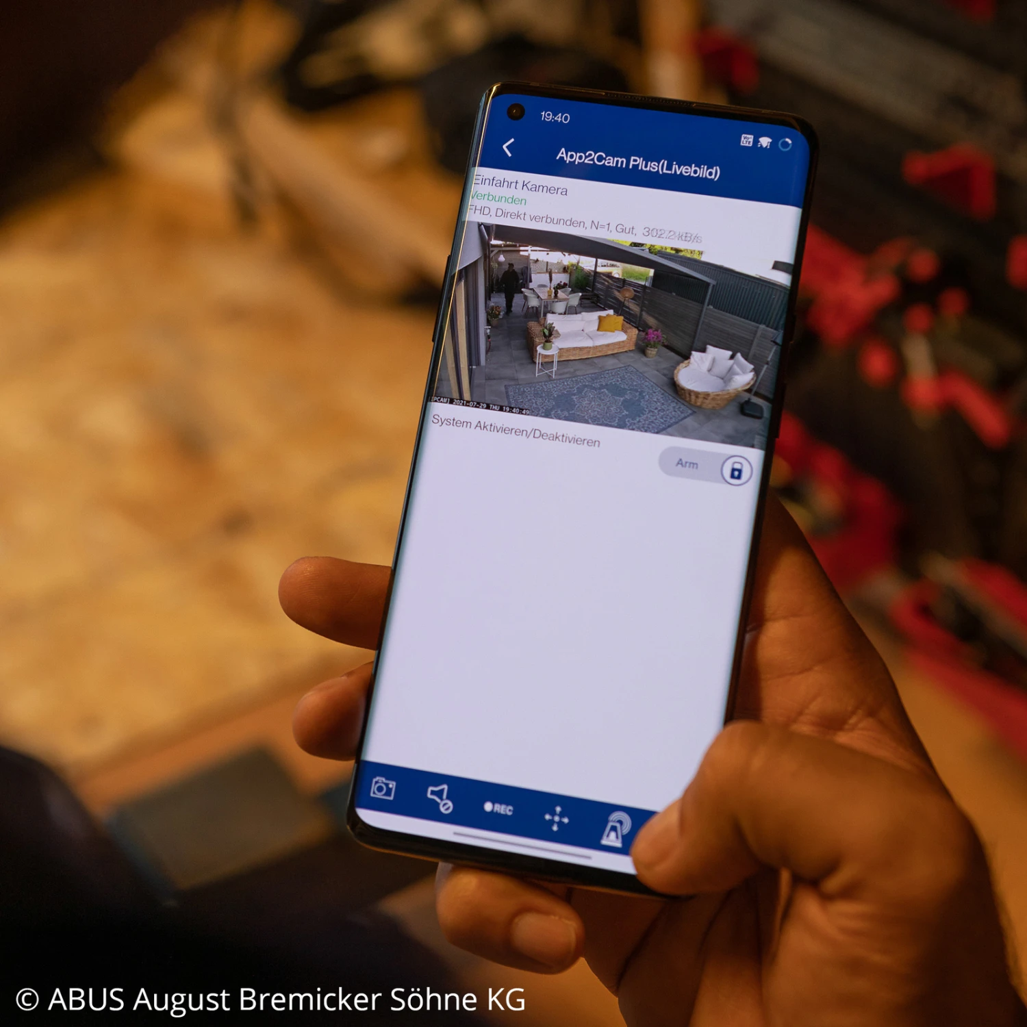 Die WLAN-Außenkamera PPIC42520 aus dem Hause ABUS ist staubdicht und gegen starkes Strahlwasser geschützt. Sie lässt sich direkt per WLAN-Verbindung über die kostenlose App2Cam Plus-App neigen und schwenken. Auch der Livestream kann so auf dem Smartphone oder dem Tablet verfolgt werden. Zur Aufzeichnung des Full-HD-Videobilds ist eine microSD-Karte im Lieferumfang enthalten.