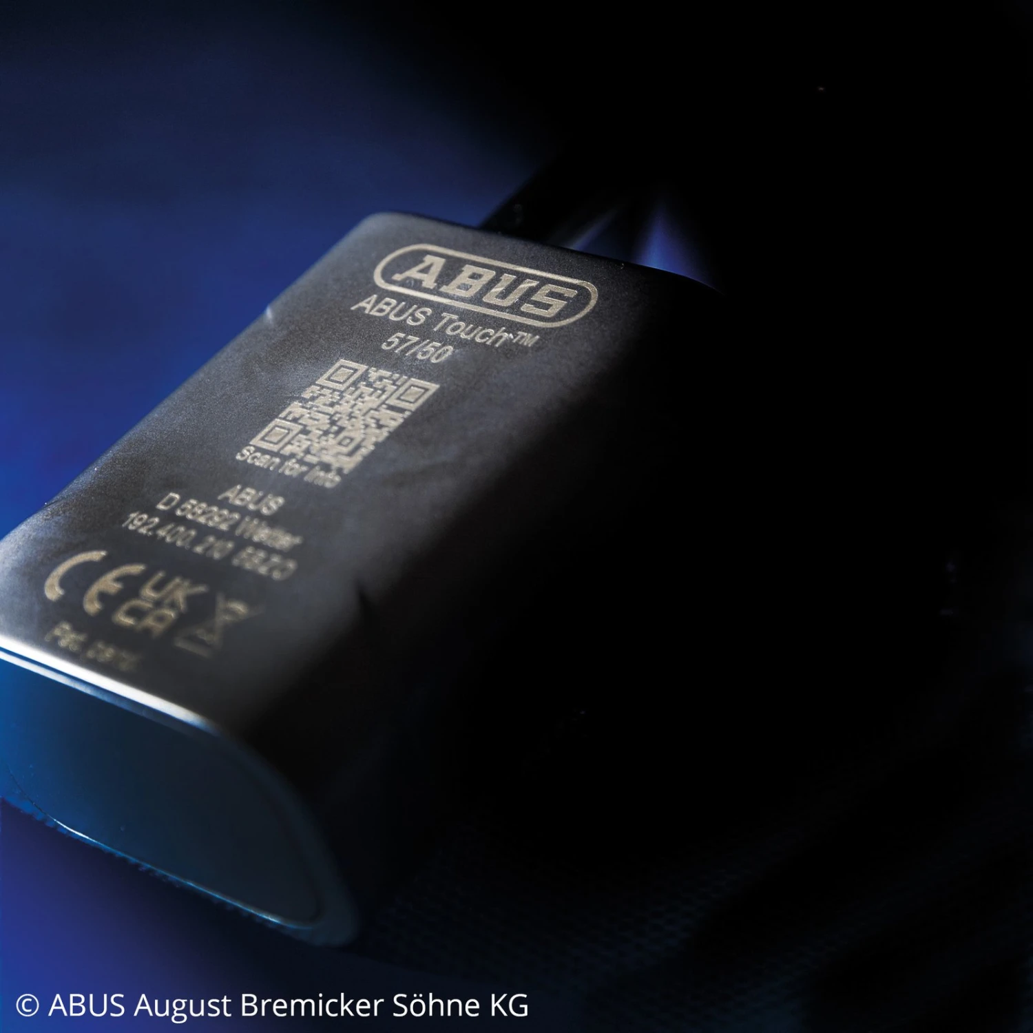 360°-Fingererkennung: ABUS Touch™ 57 Fingerabdruck-Vorhängeschloss für bis zu 20 Nutzer, IP66/IP68