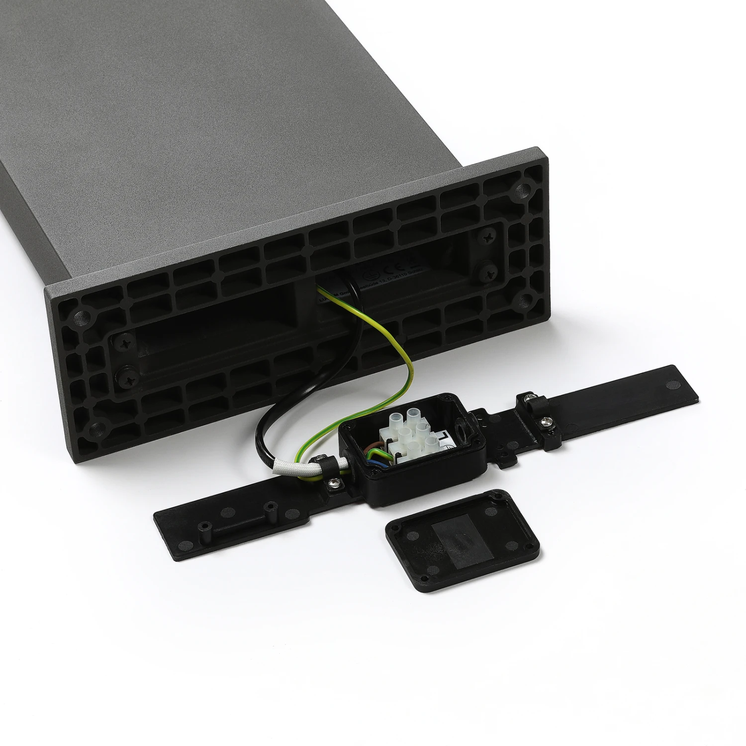 Grafitgraue LED-Wegelampe Advik mit eingebautem Sensor und geneigtem Leuchtkopf
