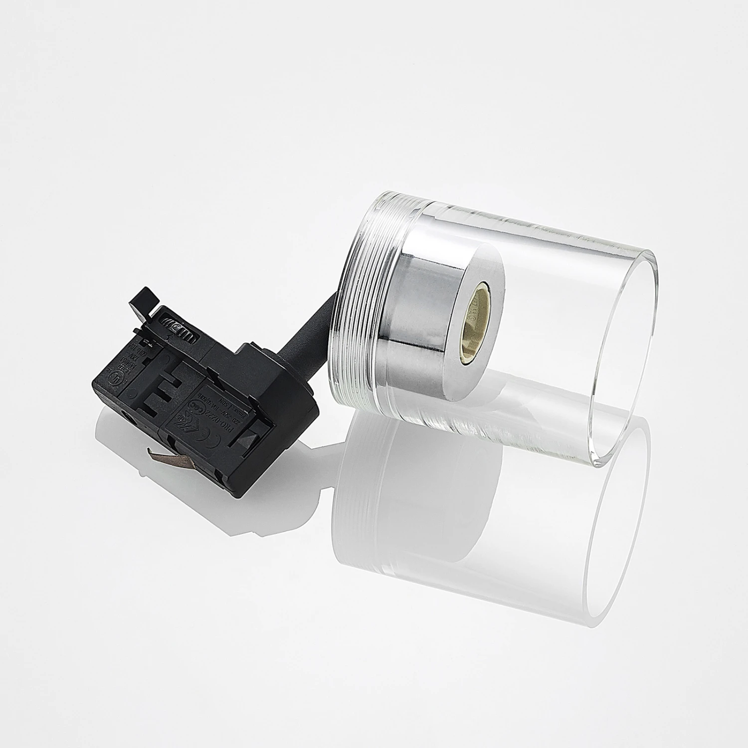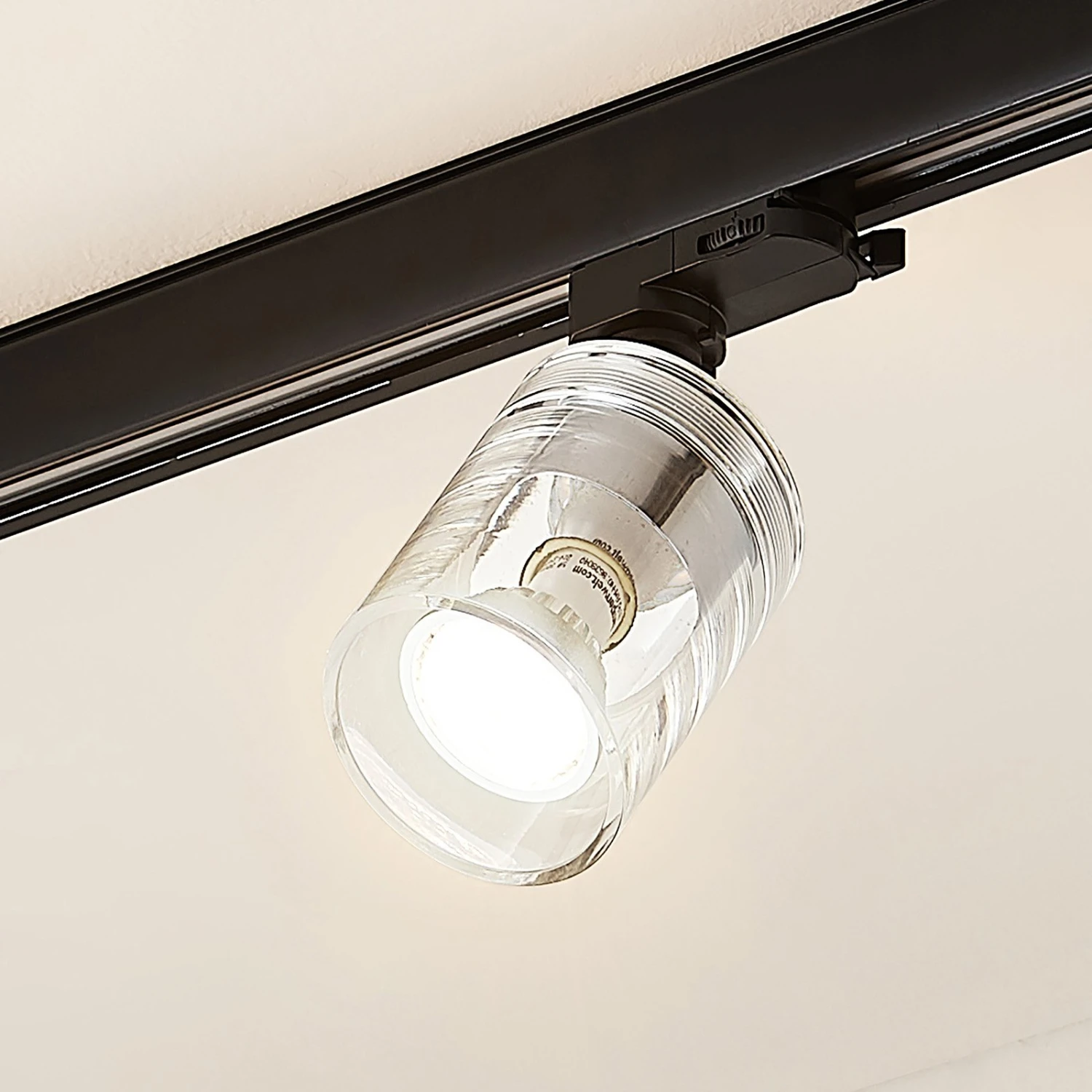 Der Schienenstrahler Felan fügt sich dank seines dezenten Aussehens mühelos in unterschiedlichste Einrichtungsstile ein. Sein einzusetzendes Leuchtmittel sitzt innerhalb eines transparenten Lampenschirms, der ein klares Licht erzeugt und somit ein passendes Ambiente für moderne Wohnbereiche erzeugt. Je nach Wahl des Leuchtmittels verfügt der Strahler über eine starke Leuchtkraft und kann ein guter Begleiter in dunklen Ecken sein. Der zylinderförmige Leuchtenschirm ist in kompakter Größe gehalten und aus Kunststoff gefertigt. Der Schienenstrahler Felan wird an einer 3-Phasen-Schiene befestigt und kann somit flexibel eingesetzt werden.