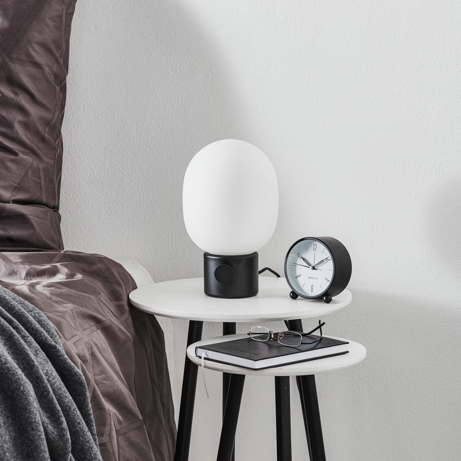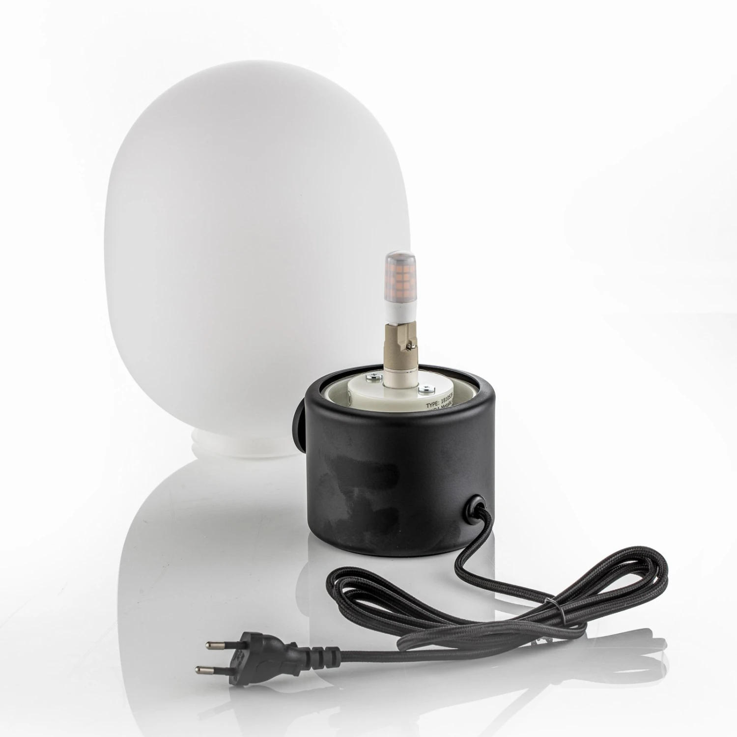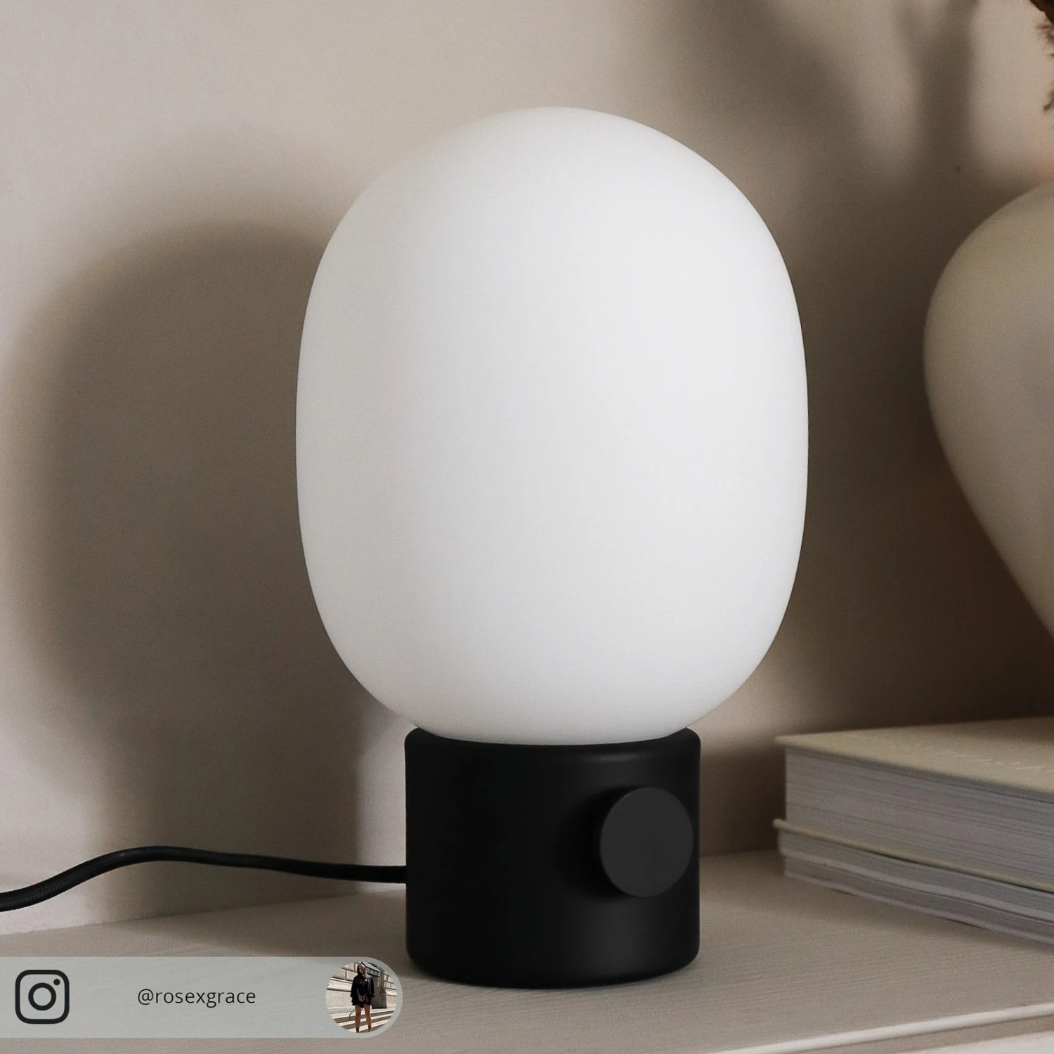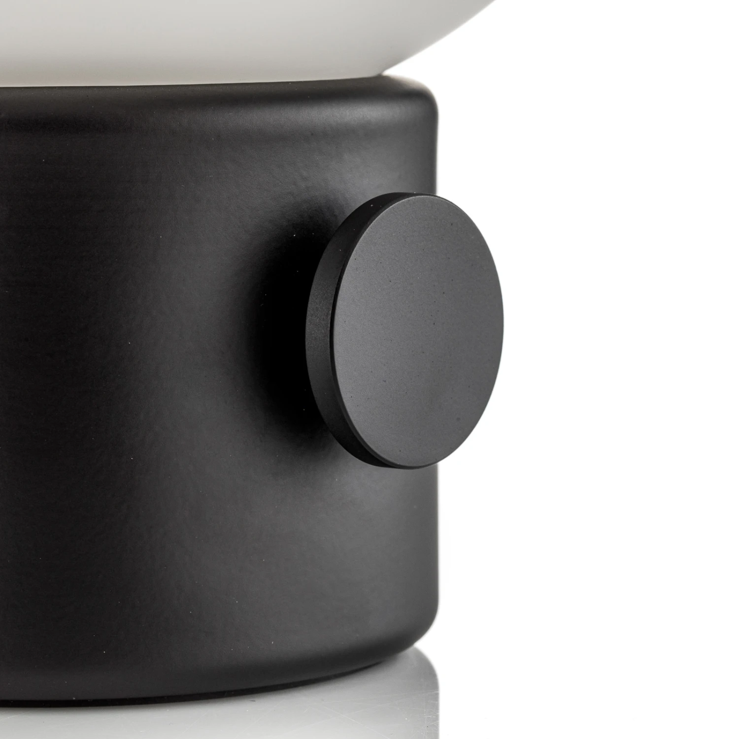 Die Tischleuchte JWDA punktet mit ihrem zeitlosen Design und den wertigen Materialien. Der Sockel aus schwarzem Edelstahl steht in einem angenehmen Gegensatz zu dem Leuchtenschirm aus mundgeblasenem Opalglas. Trotz dieses Kontrastes wirkt die Leuchte optisch harmonisch und elegant.