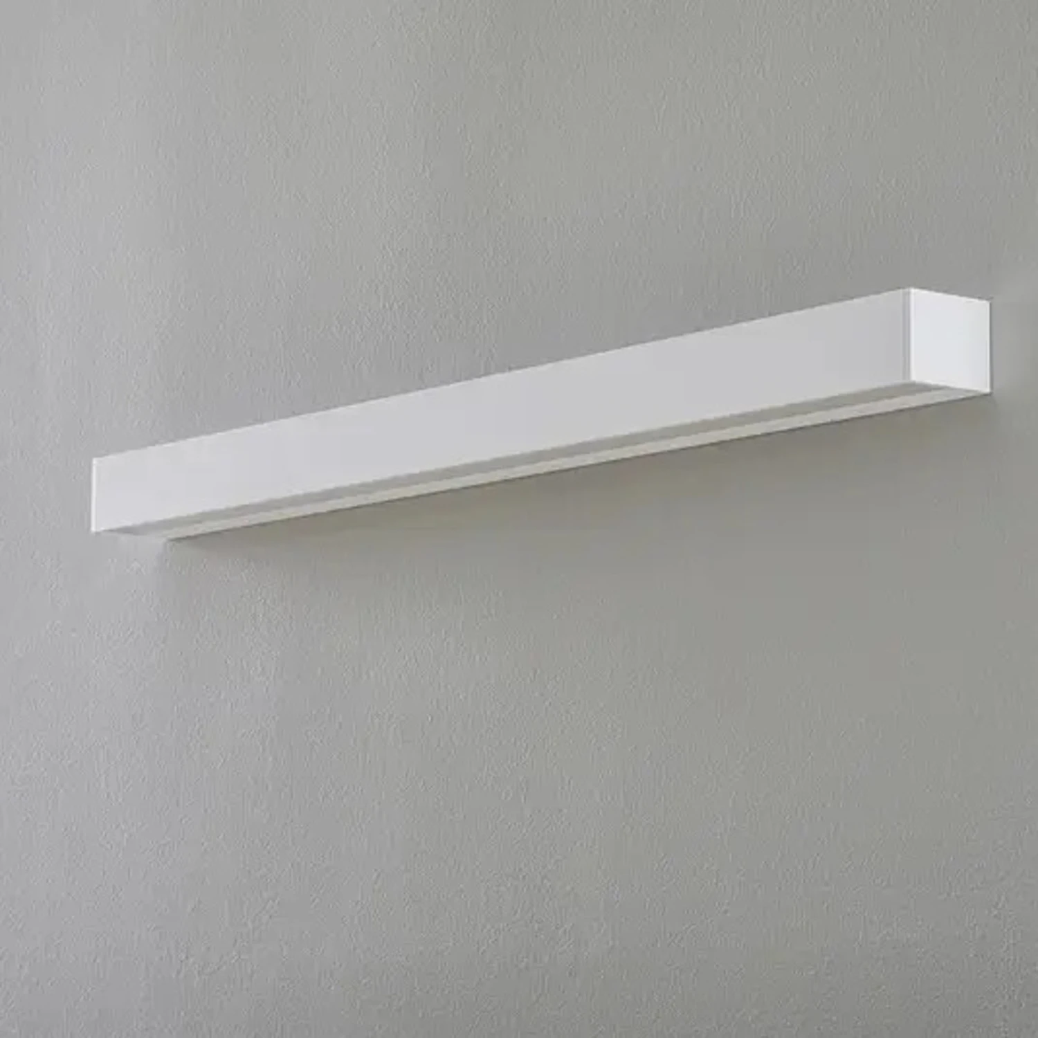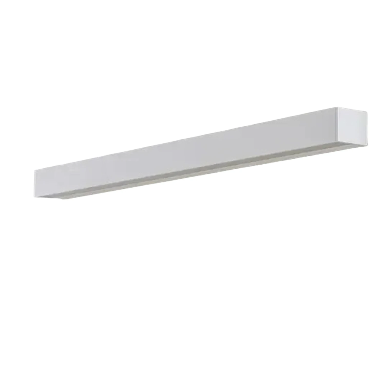 Diese eckige Wandleuchte erstreckt sich auf über 120 cm Breite und sorgt mit leistungsstarken LEDs für eine umfassende Grundbeleuchtung. Mittels DALI-Anbindung kann der Lichtoutput geregelt werden. Das Gehäuse besteht aus Aluminium. Das Licht der warmweißen LEDs fällt zunächst auf die innen befindlichen Reflektoren und wird dann durch die lichtstreuenden Kunststoff-Abdeckungen gleichmäßig nach oben und unten verteilt. Mit ihrer Leuchtstärke bietet sich die Wandleuchte insbesondere für moderne Innenräume im öffentlichen und gewerblichen Bereich an.