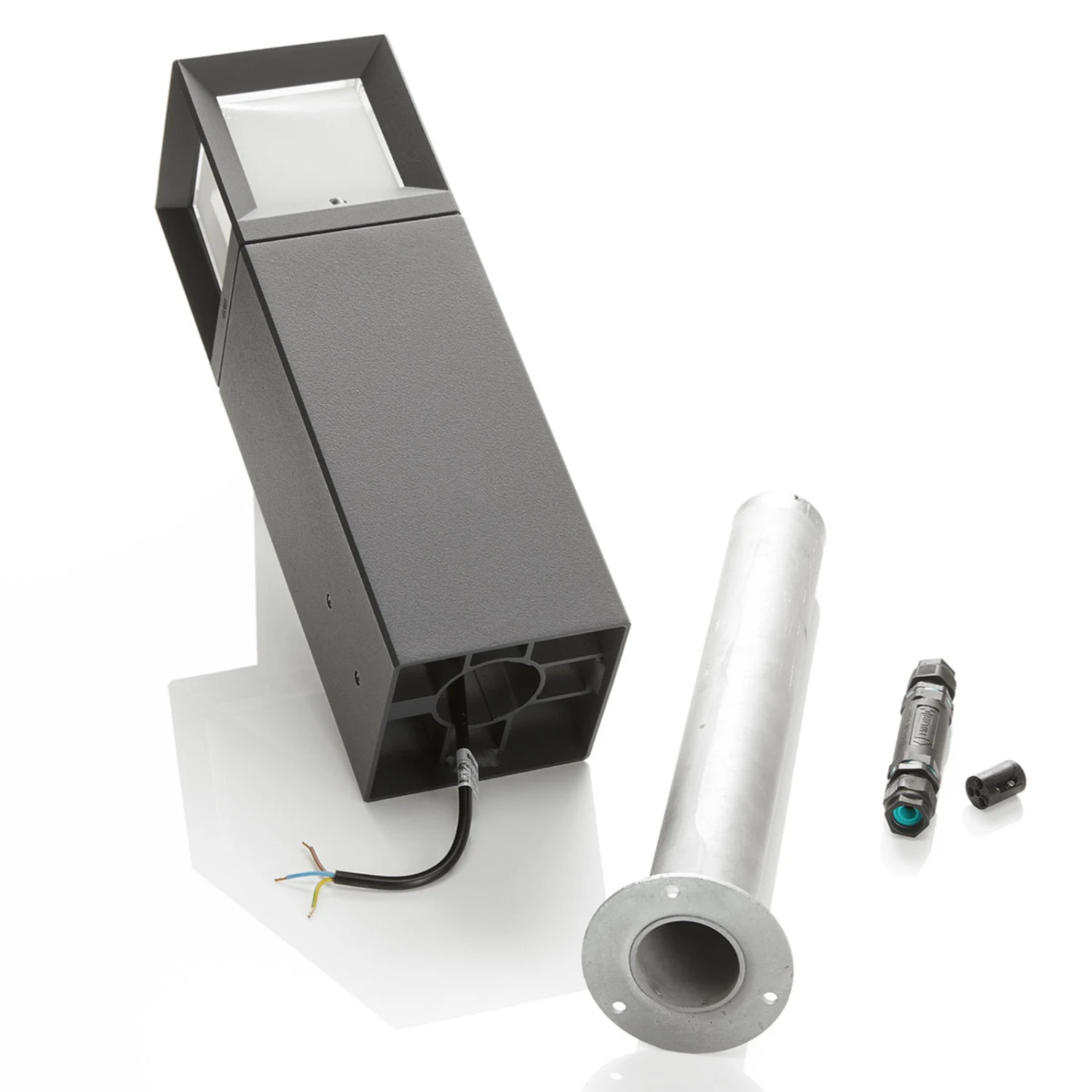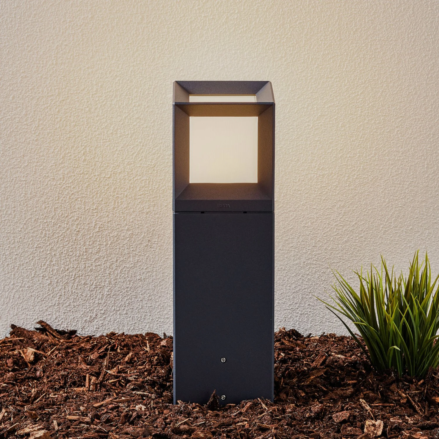 Die LED-Sockelleuchte 84604 aus dem Hause BEGA steht für hochwertige Beleuchtung im Außenbereich. Mit ihrem quadratischen Grundriss und dem nach allen vier Seiten lichtdurchlässigen Leuchtenkopf liefert die Leuchte nicht nur optisch ein modernes Bild ab, sondern überzeugt auch mit ihrem allseitig strahlenden Licht. Dadurch kann sie in vielen Beleuchtungssituationen eingesetzt werden, z. B. an Wegen, auf Terrassen oder im Eingangsbereich. Mittels eines Erdstücks (inklusive) aus feuerverzinktem Stahl wird die Leuchte im Boden verankert.