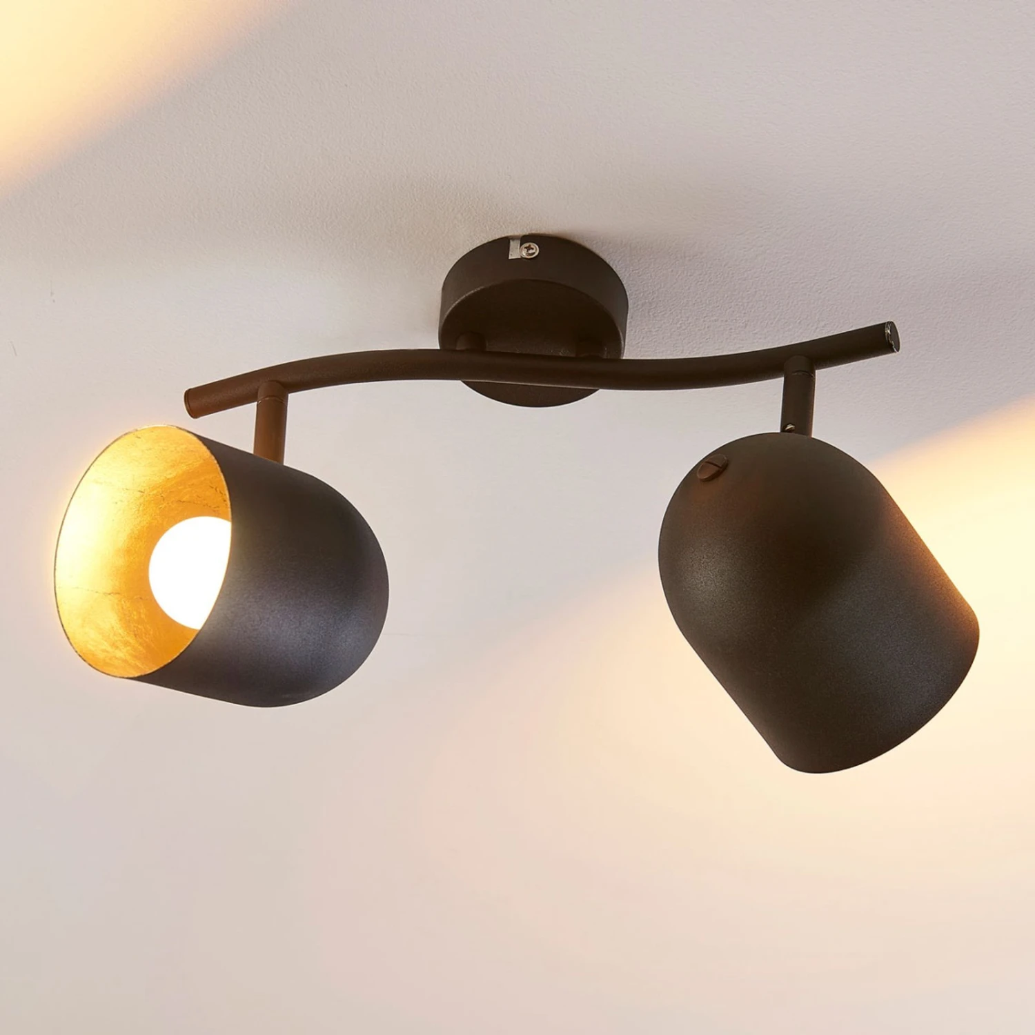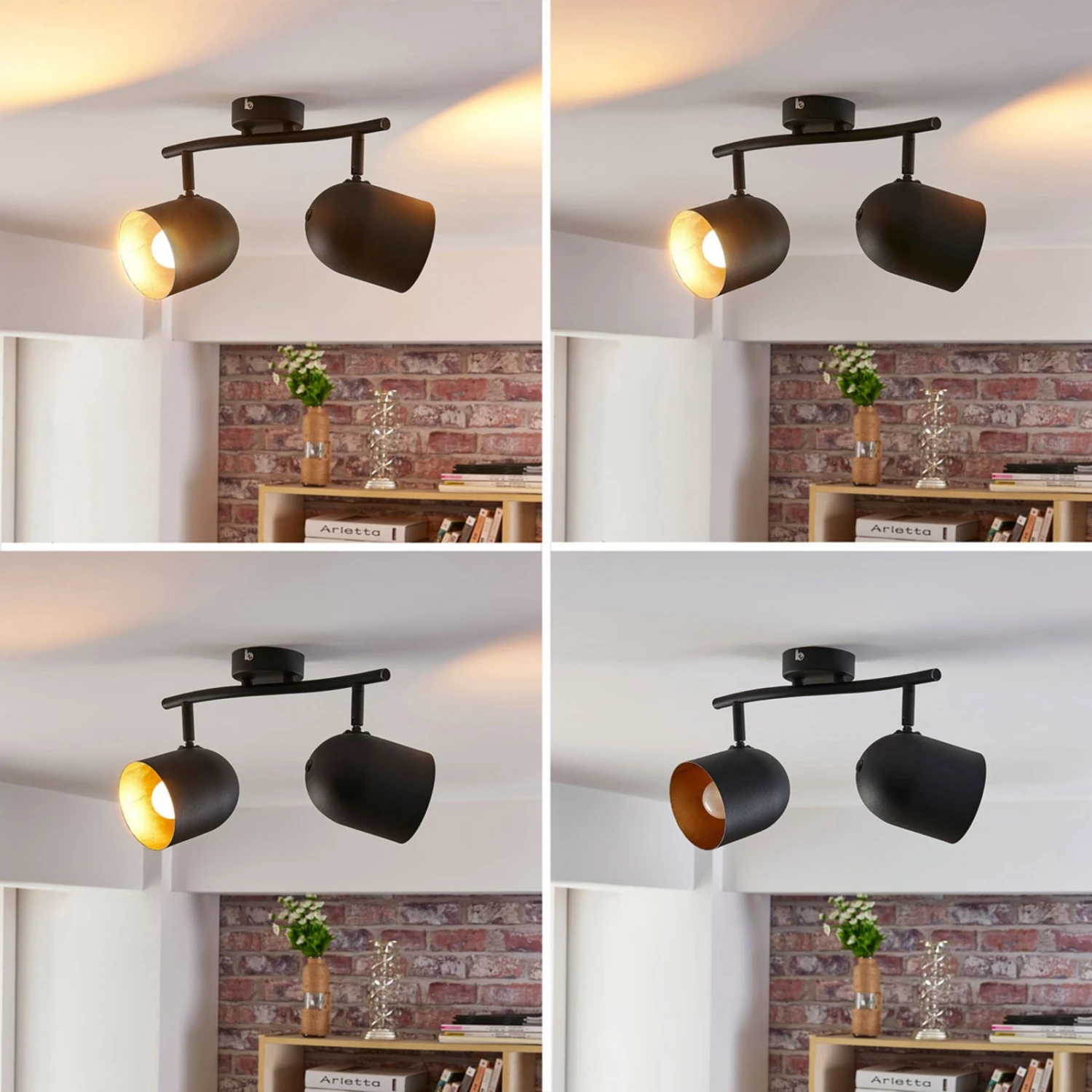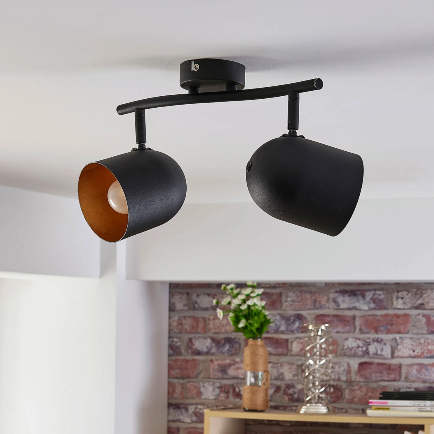 Morik ist vor allem für die Montage an der Decke gedacht und besitzt zwei schwenkbare Schirme. Diese bestehen aus Metall und sind außen schwarz und innen golden. So kann eine besonders warmtönige Lichtabstrahlung gewährleistet werden. Die Leuchte kann mit E14-Leuchtmitteln bestückt werden und gewährleistet durch ihre Leuchtenschirme eine blendfreie Beleuchtung.