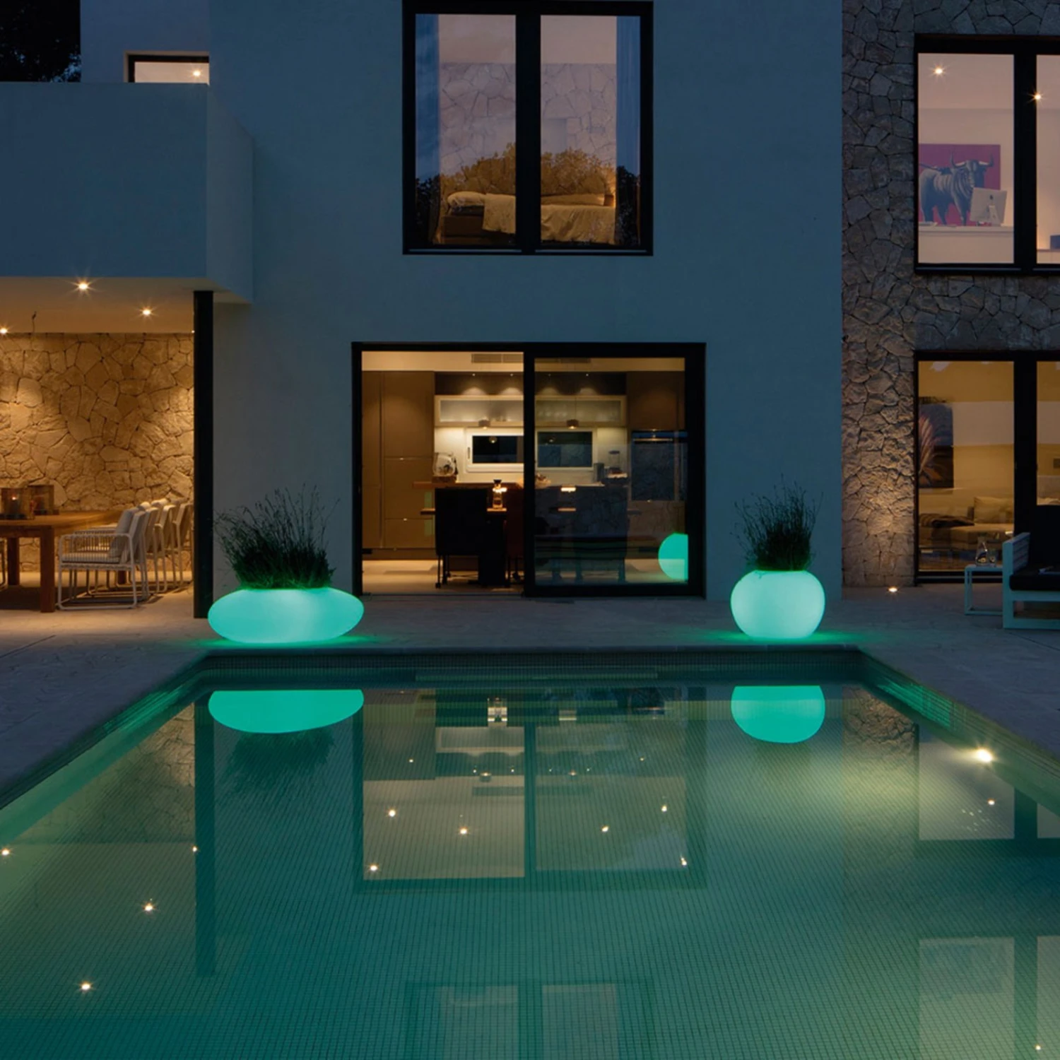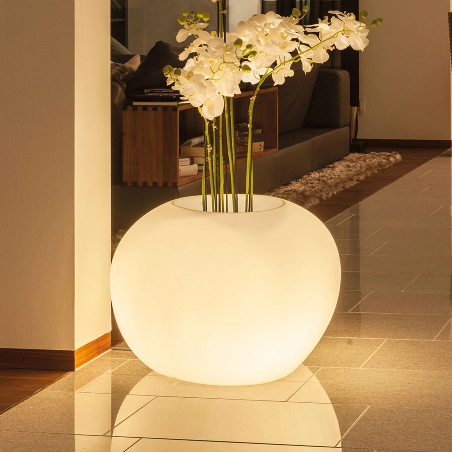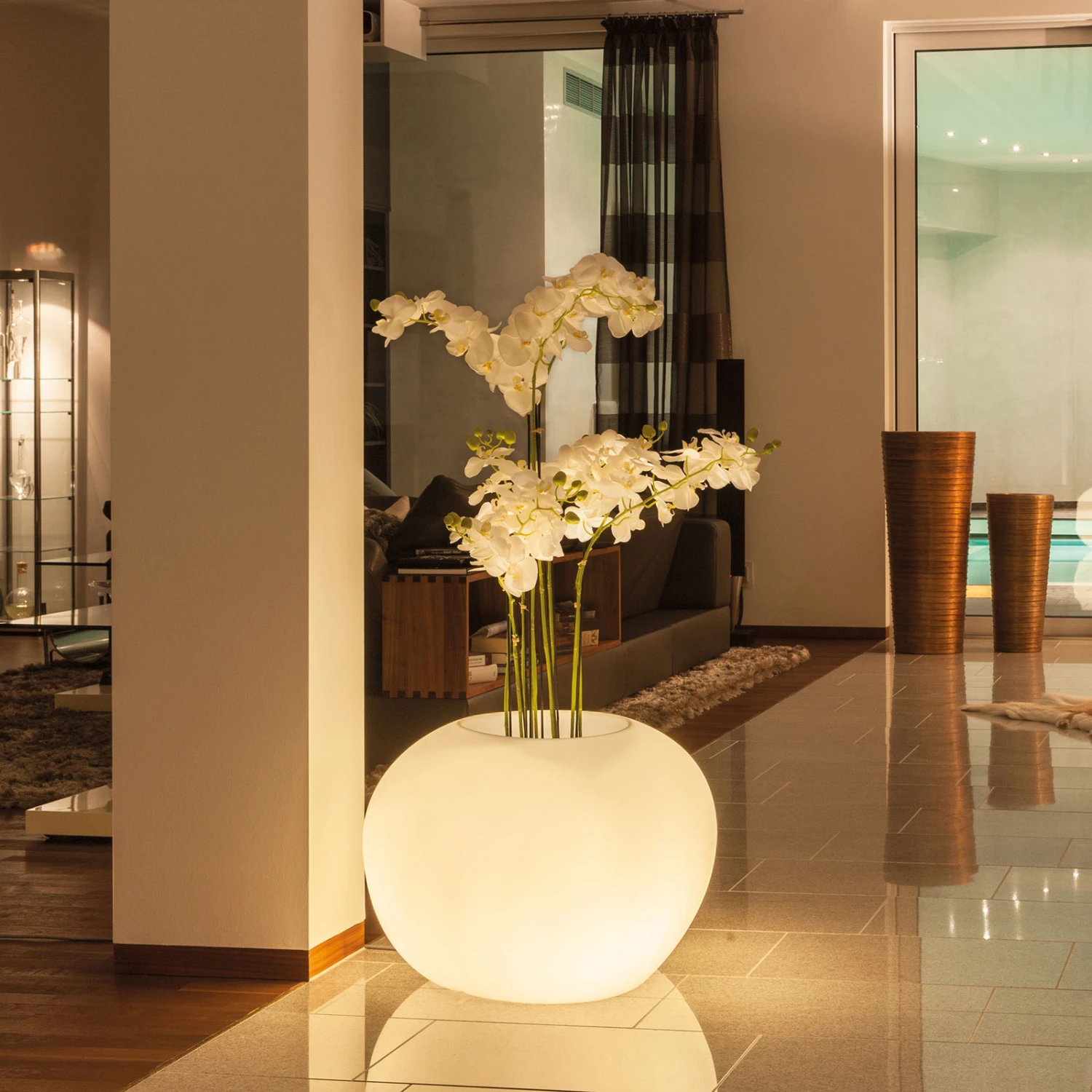 Die ungewöhnliche Storus IV vereint Lichtobjekt und Pflanzschale in einem: Die Dekorationsleuchte ist für die Nutzung sowohl in Innenräumen als auch – dank Schutzart IP66 – auf dem Außengelände verwendbar. Sie kann mit einem Pflanz- oder mit einem Dekoeinsatz (siehe Zubehör) kombiniert werden und zeigt somit eine große Wandelbarkeit in der Optik und in der Nutzbarkeit.