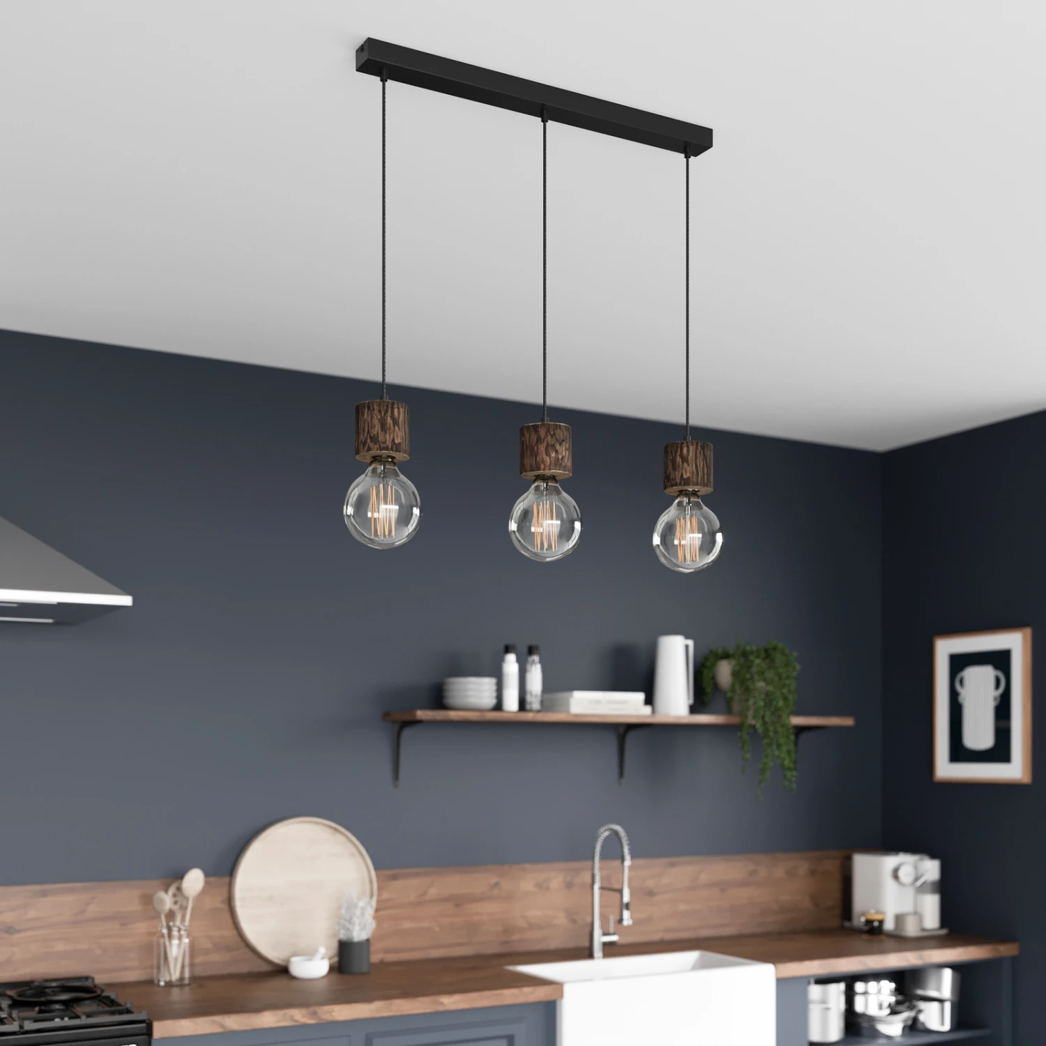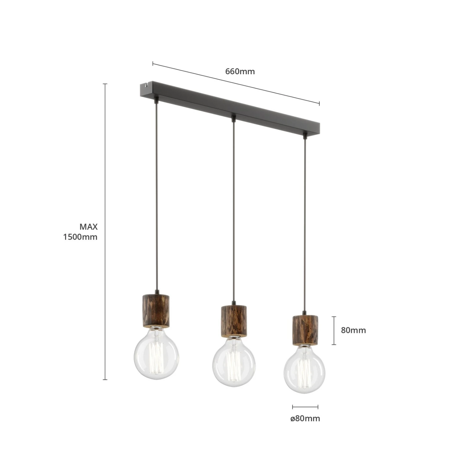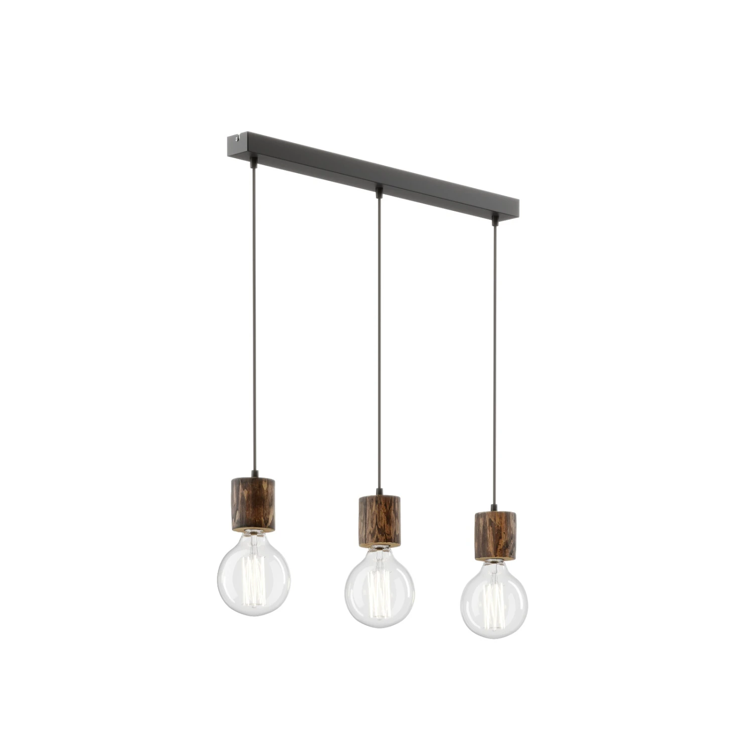 Dreiflammige Hängeleuchte Terra aus dunklem Kiefernholz in länglicher Form