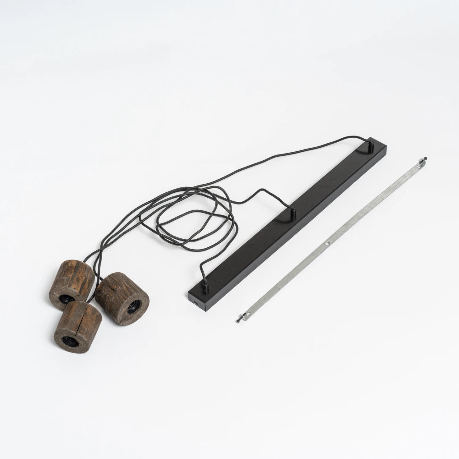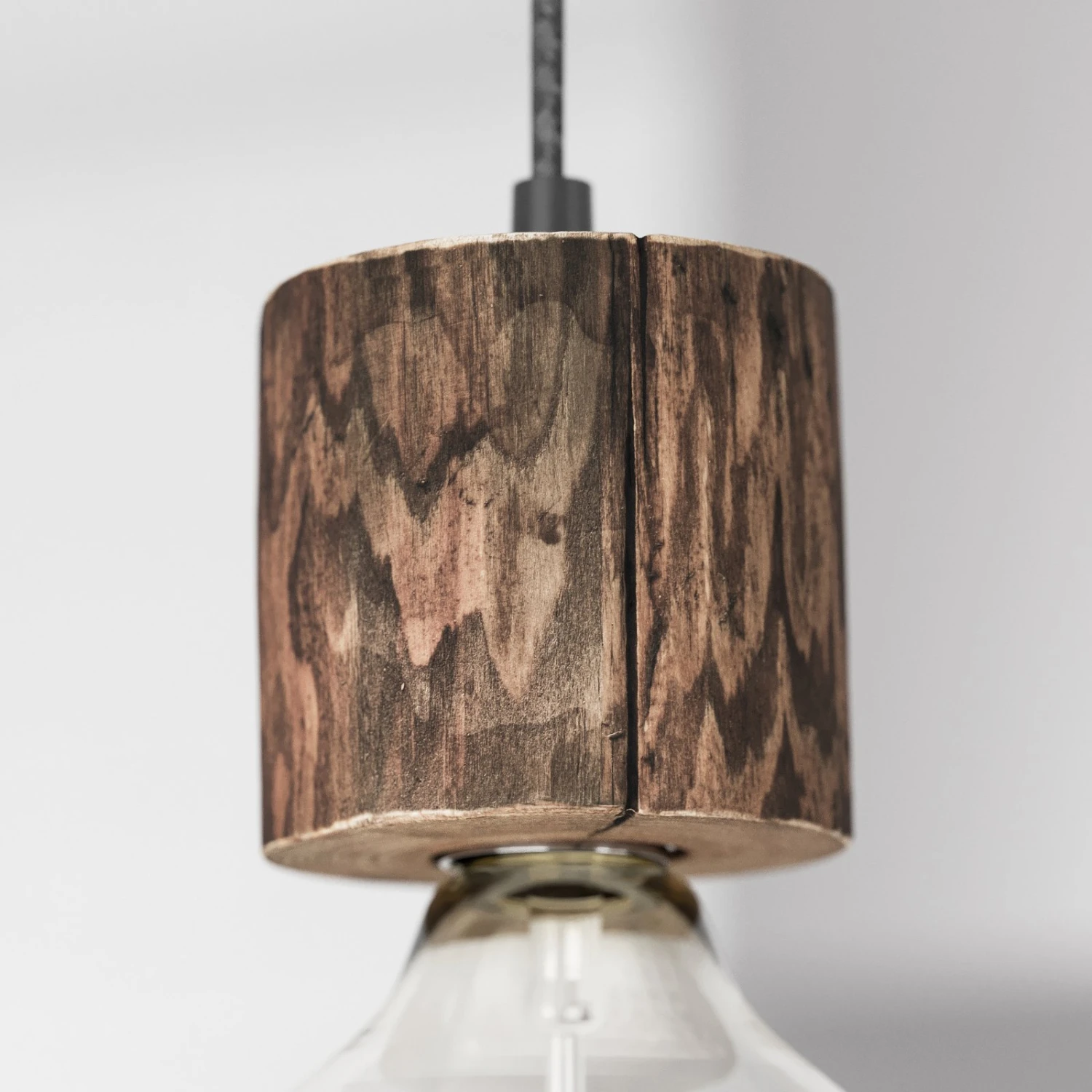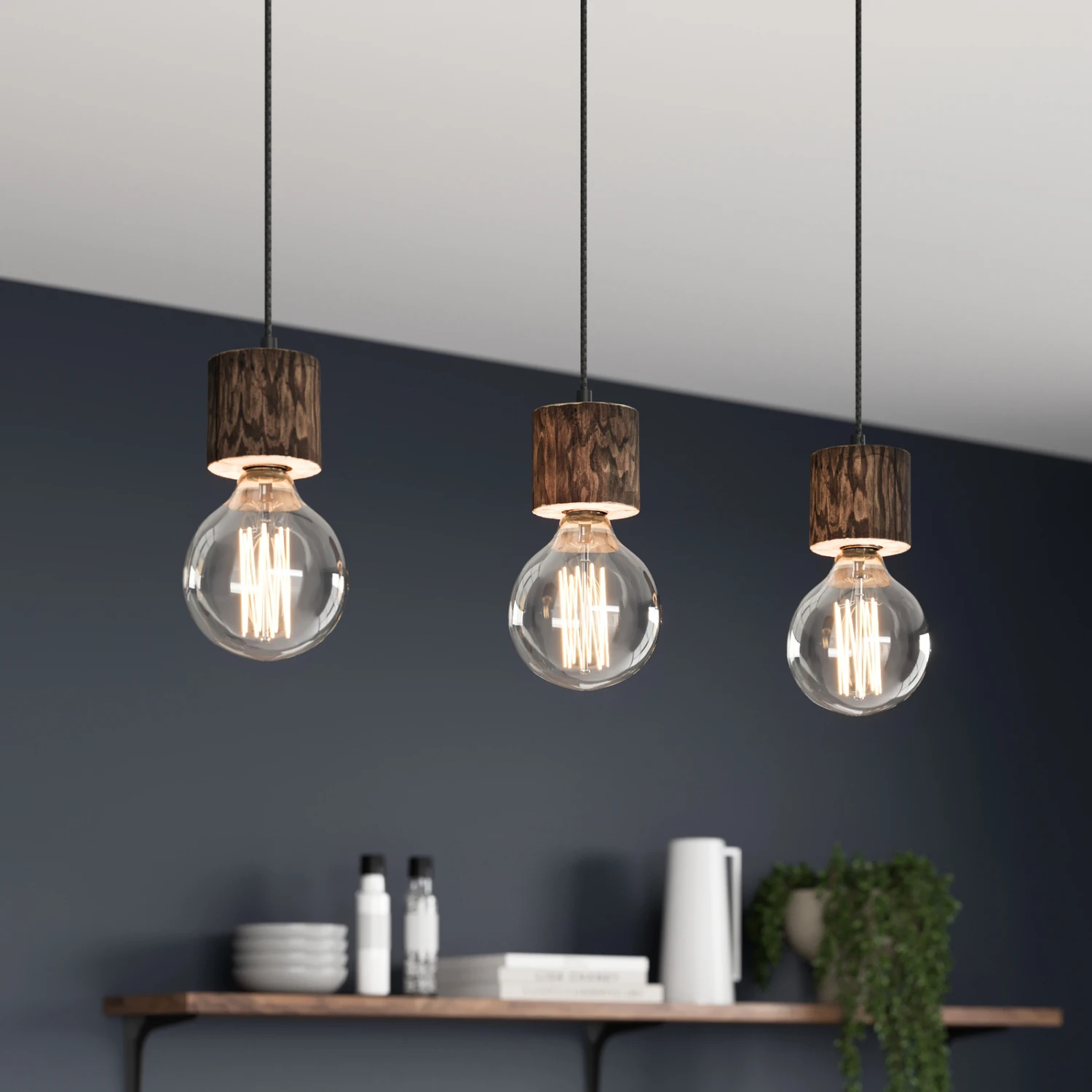 Dreiflammige Hängeleuchte Terra aus dunklem Kiefernholz in länglicher Form