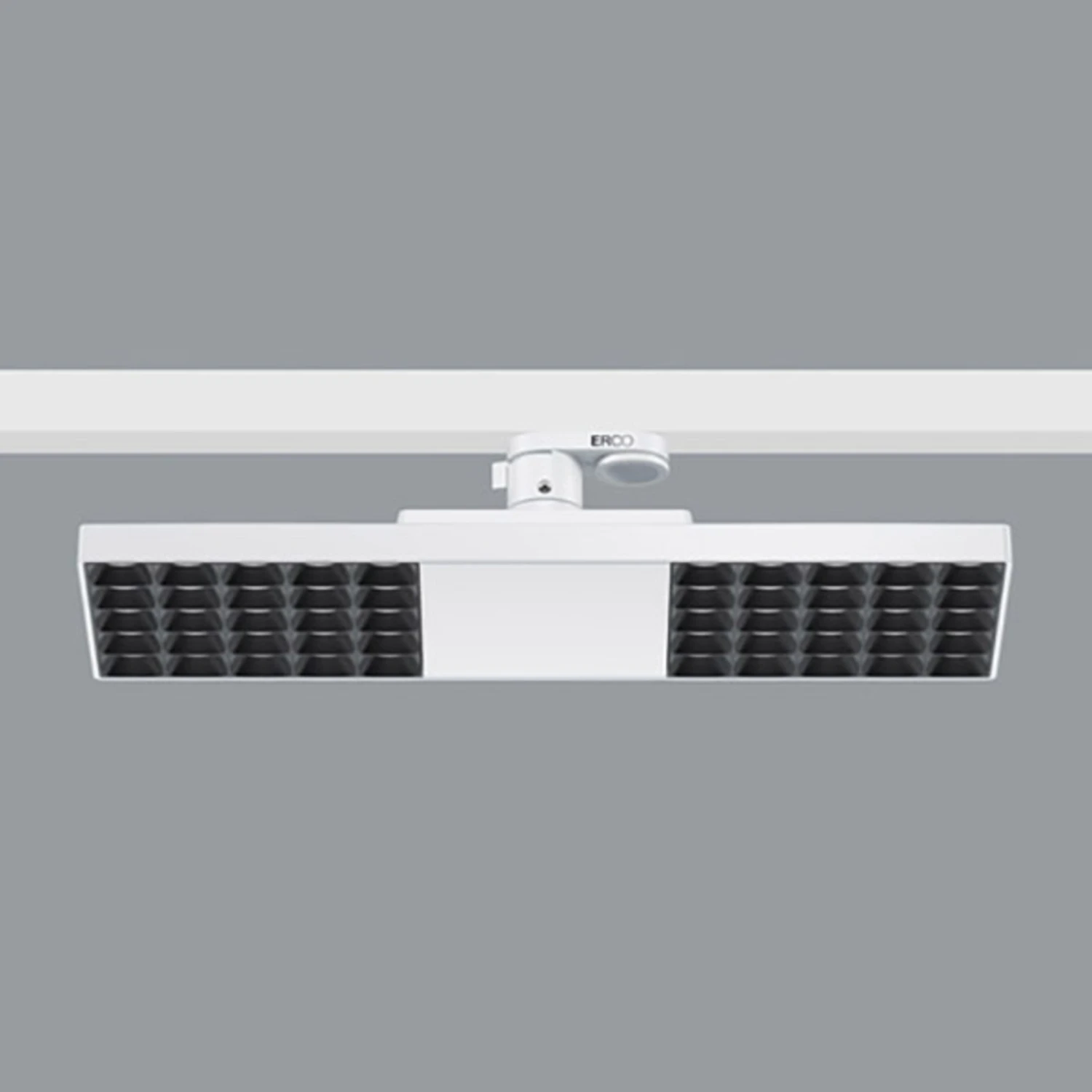LED-Rasterleuchte Jilly von ERCO zur Steuerung über Casambi-App für 230 V 3-Phasen-Schienen – 15 W LED, Lichtverteilung extra wide flood (85°)