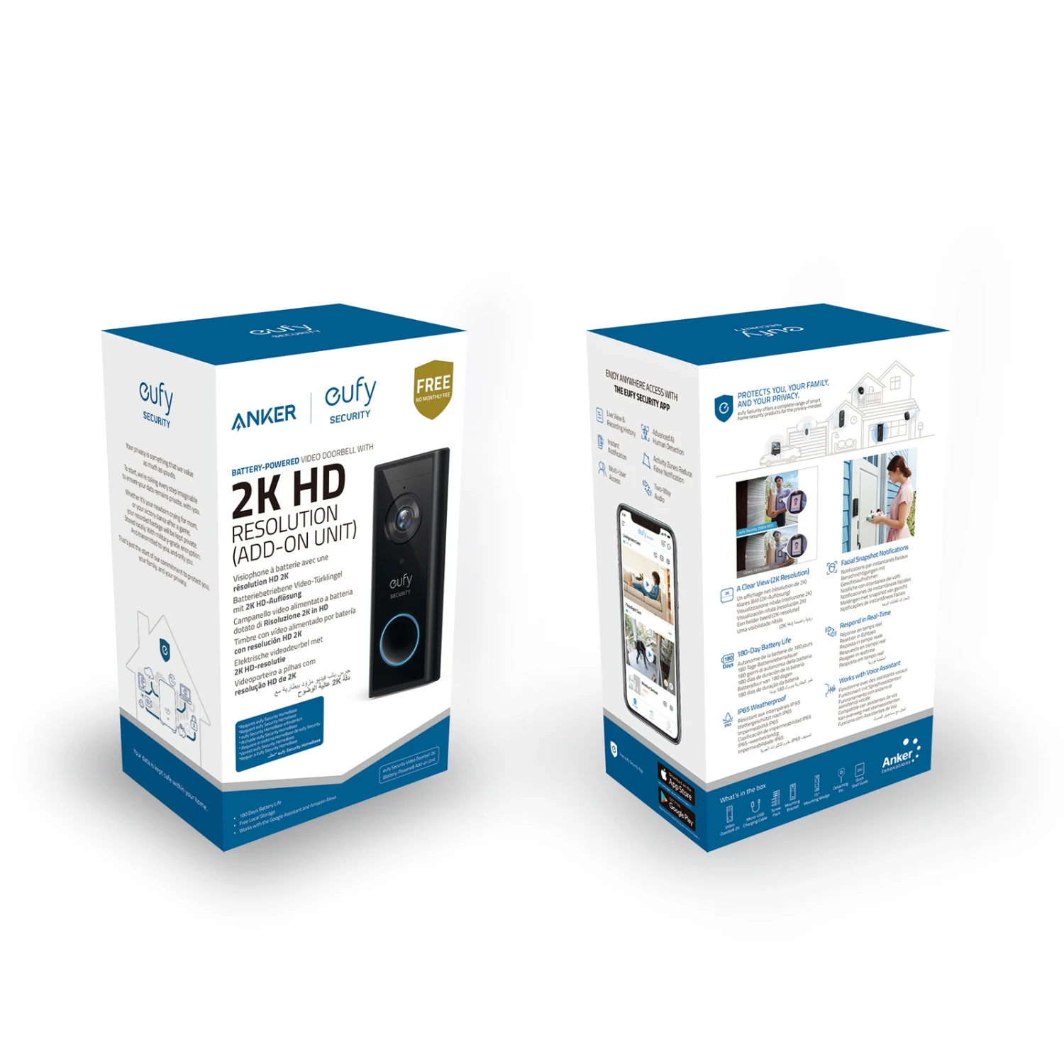 Die kabellose Video-Türklingel dient zur Erweiterung eines bereits bestehenden Überwachungsnetzwerks und benötigt zum Betrieb eine EUFY HomeBase 2.