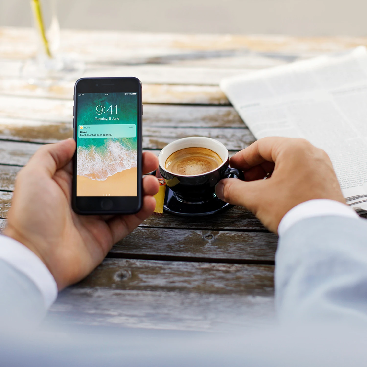 Der kabellose Kontaktsensor ist für alle Fenster und Türen geeignet und erkennt sofort, ob diese geschlossen oder geöffnet sind. Durch die Funkverbindung mit Bluetooth gibt der Sensor bei jeder Statusänderung die Meldung an das angebundene Gerät, das sofort eine Information über das Öffnen oder Schließen weitergibt.