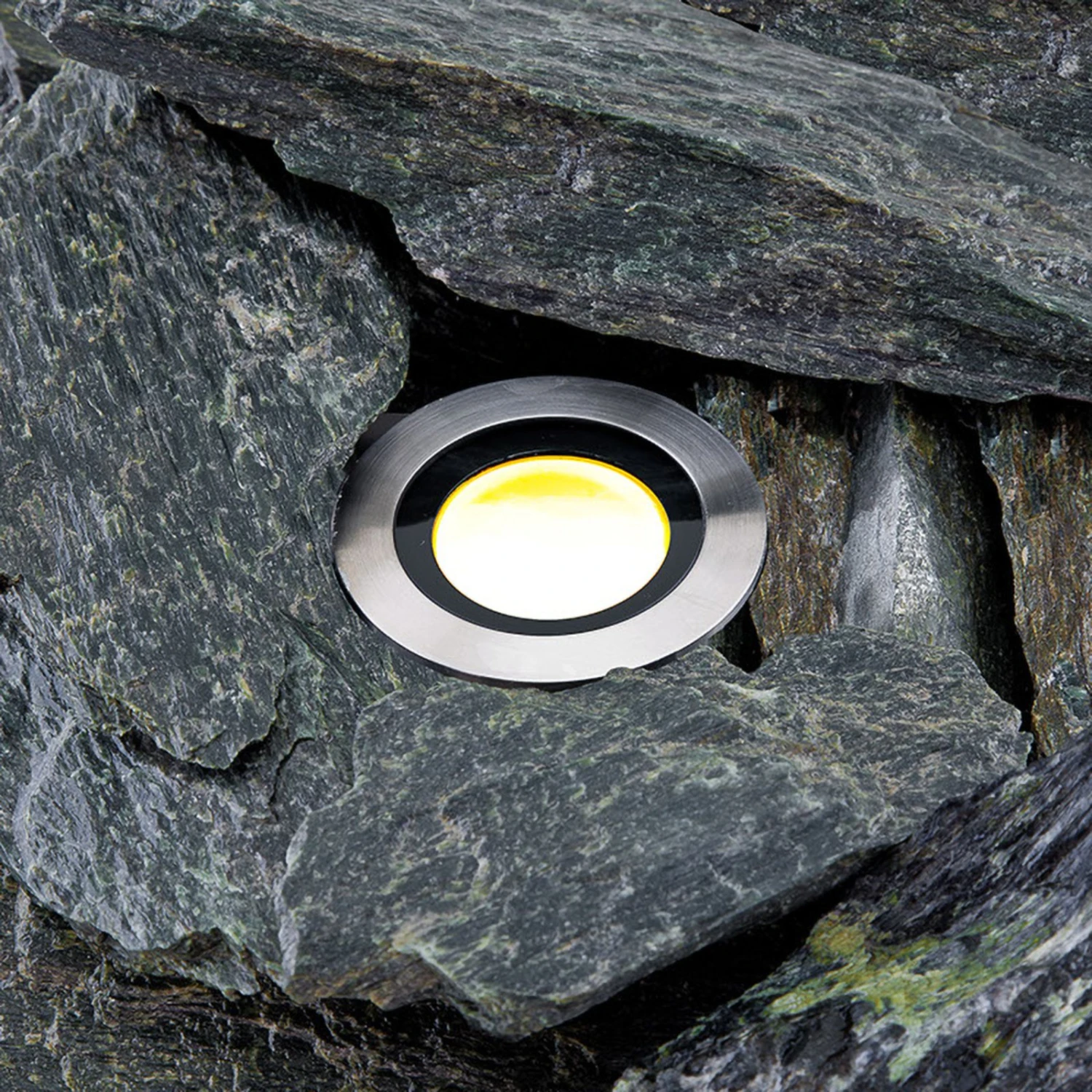 Sie wird mit offenen Aderenden geliefert und passende Treiber sind über das Zubehör separat erhältlich. Generell wird das warmweiße Licht der integrierten LEDs dank der satinierten Oberfläche der Glasscheibe blendfrei abgegeben. So empfiehlt sich diese Einbauleuchte gleichsam als Orientierungslicht an Wegen oder als universell einsetzbare Akzentbeleuchtung.