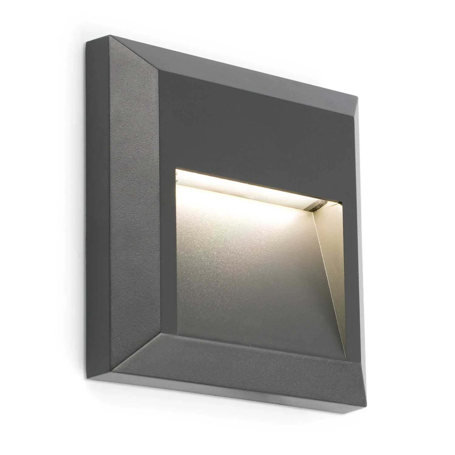 Dunkelgraue LED-Außenwandleuchte Grant mit indirektem Lichteffekt