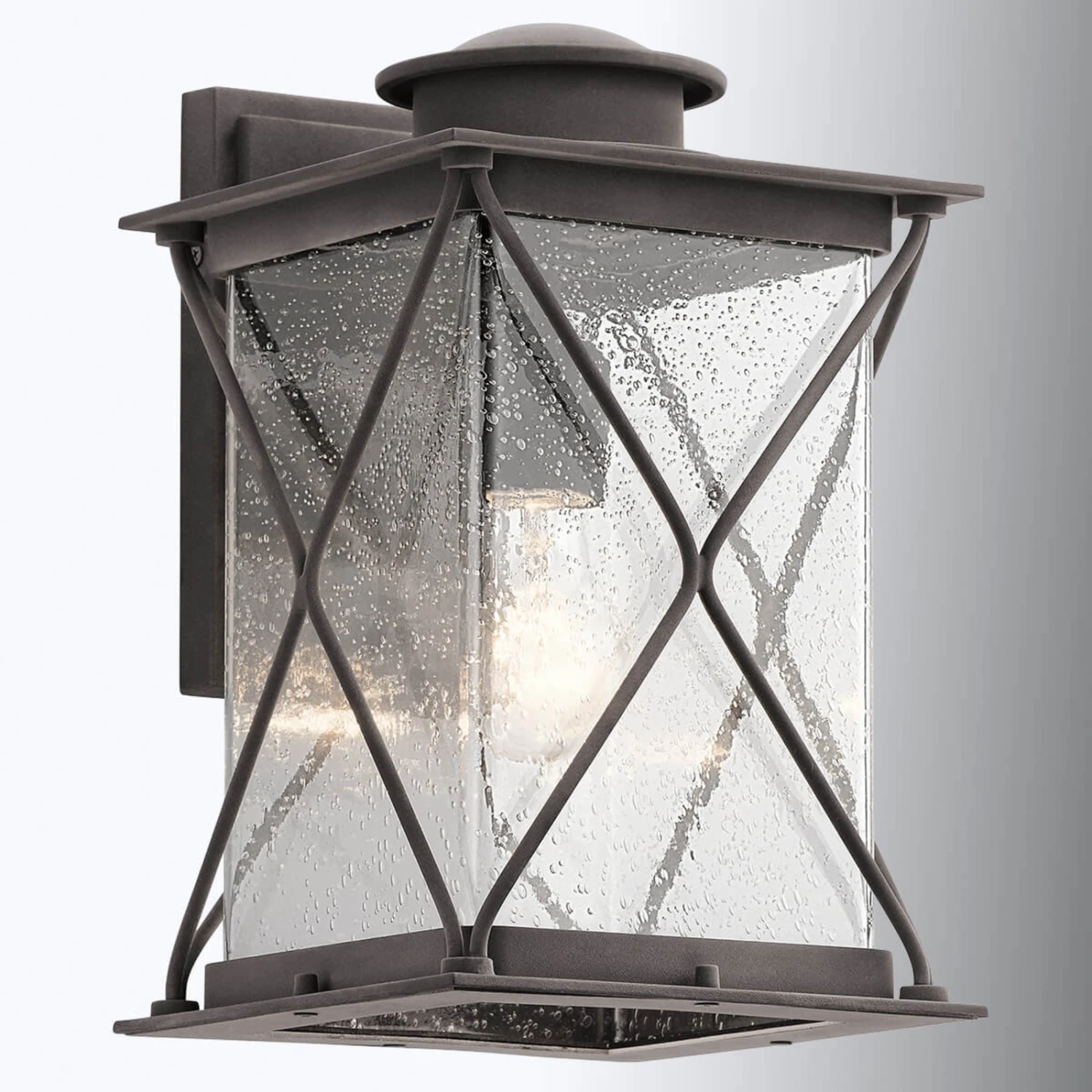 Die Außenwandlampe Argyle ist aufgrund ihrer Form- und Farbgestaltung geradezu prädestiniert für die Nutzung in Verbindung mit einem ländlich-rustikalen Grundstücksstil.