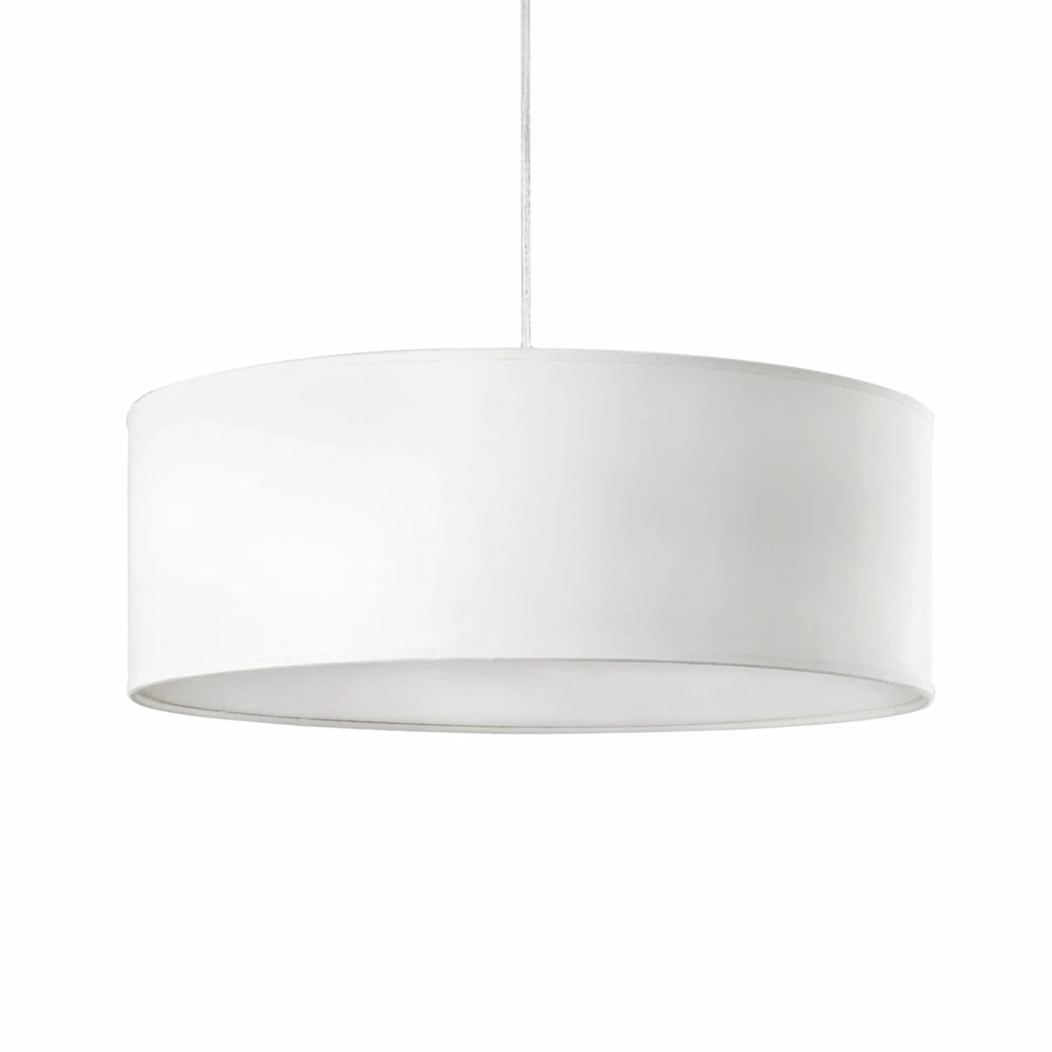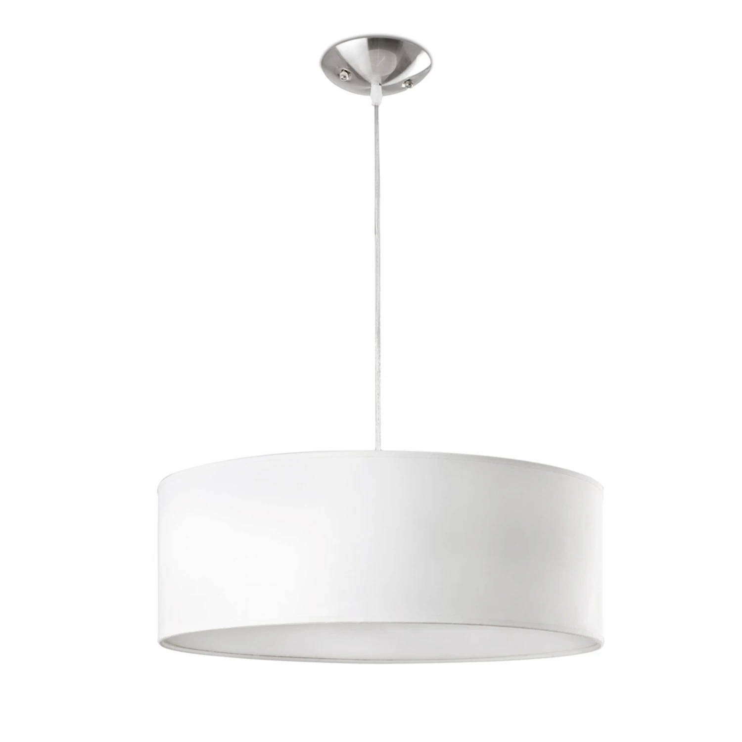 Die Hängeleuchte SEVEN präsentiert sich mit einem großen Textilschirm im modernen Stil. Die weiße Innenseite des Schirms sorgt für eine stimmige und angenehme Beleuchtung über Esstischen oder Sitzgruppen.