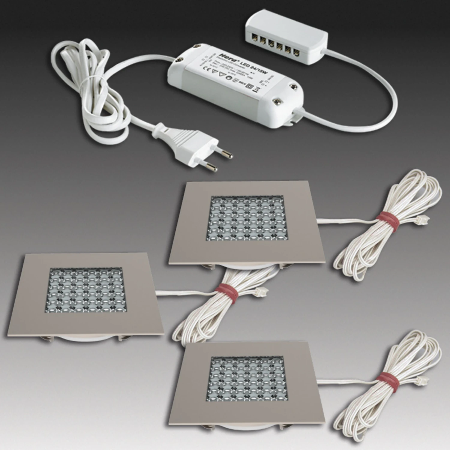 Q 68-LED quadratischer Einbaustrahler mit warmweißem Licht im 3er Set