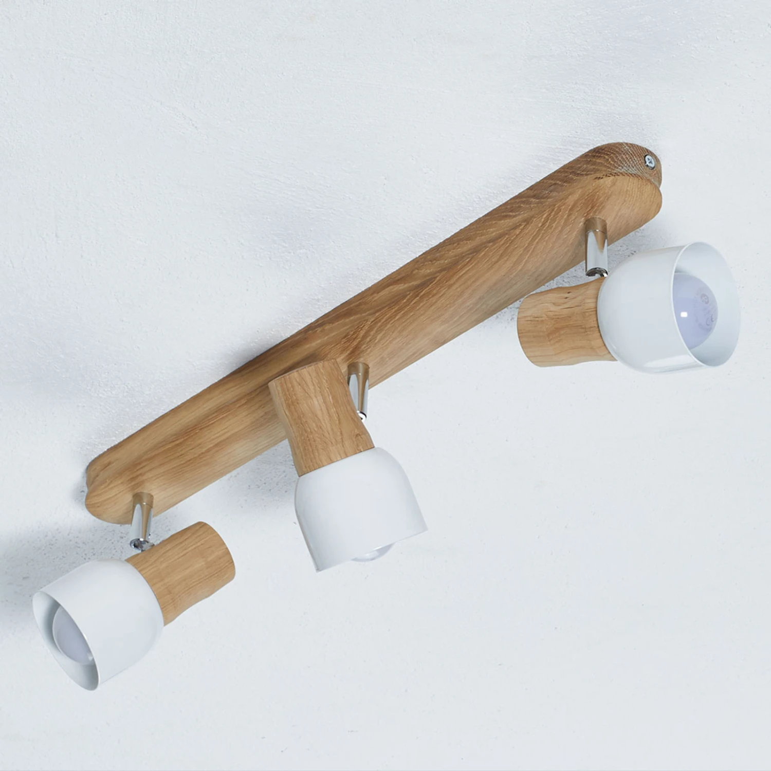Mit ihren drei sowohl dreh- als auch schwenkbaren Leuchtenspots aus Holz und Metall bietet die Deckenlampe Svantje nicht nur ein optimales Lichtergebnis, sondern auch ein sehr attraktives Design, das den modernen Wohnraum wunderbar ergänzt und ihm eine zusätzliche natürliche Note verleiht. Zum Einsatz bieten sich neben herkömmlichen Glühlampen auch LED-Leuchtmittel an, so dass auch eine energieeffiziente Beleuchtung möglich ist (passendes Leuchtmittel ist im Zubehör zu finden).