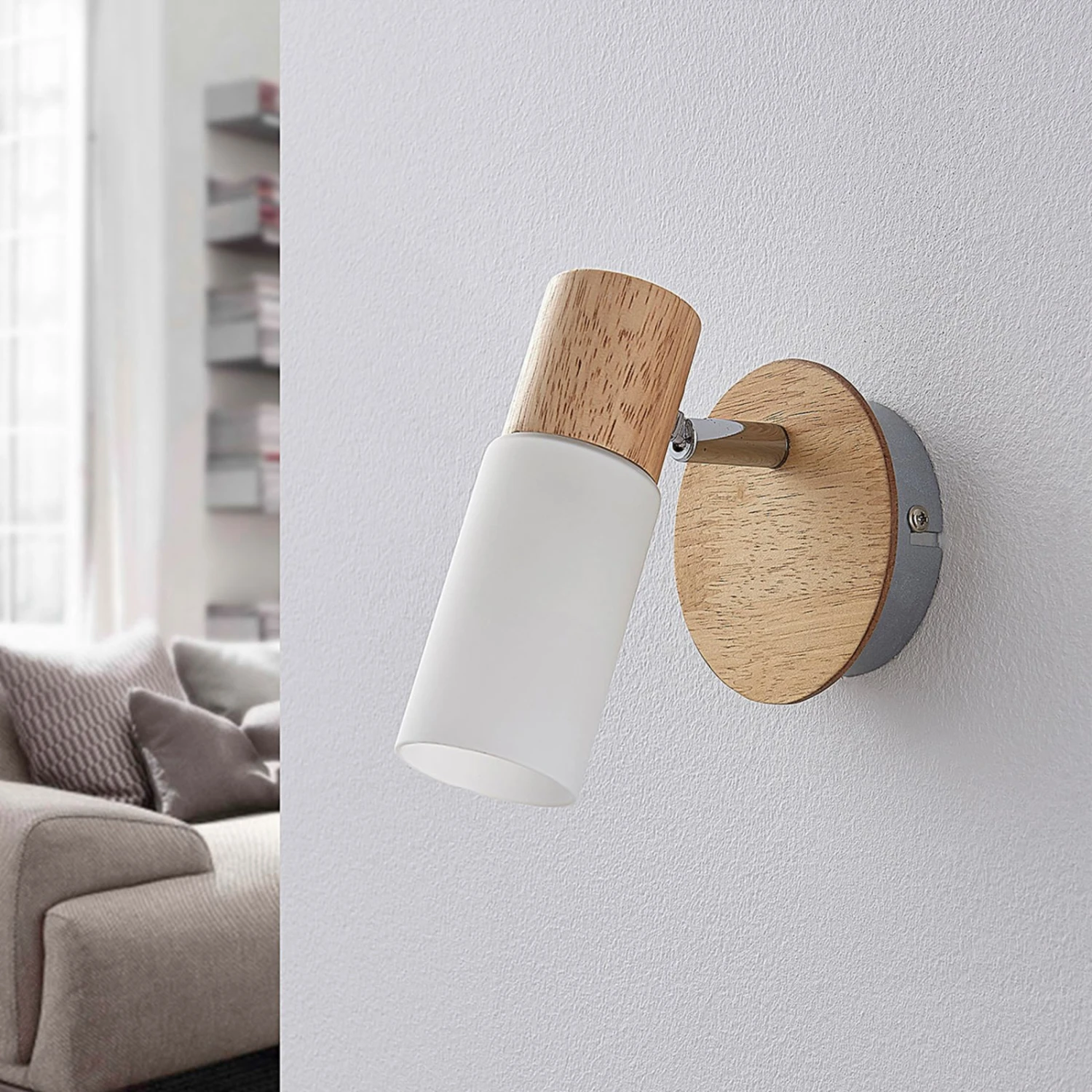 Dieser Holzspot überzeugt mit seinem markanten design. Der weiße, zylinderförmige Glasschirm verteilt den Lichtschein besonders weich, weshalb sich der Strahler sehr gut für die Beleuchtung von Wohnräumen eignet. Dabei kann man Christoph längst nicht nur an der Wand anbringen, auch die Montage als Deckenstrahler ist empfehlenswert. Der Holzdekor an der Halterung und als Verlängerung des Glasschirms lässt eine warme, natürliche Ausstrahlung entstehen.