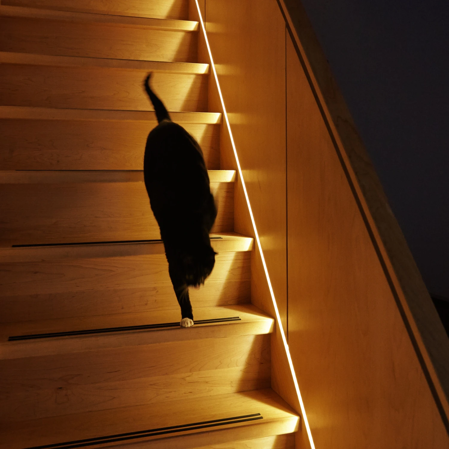 Zur Stromversorgung wird Flex Light mit dem beiliegenden Steckernetzteil an eine Steckdose im Innenbereich angeschlossen. Das Ausgangskabel wird an die ebenfalls enthaltene Steuerungsbox angesteckt, welche mit dem Strip verbunden wird.