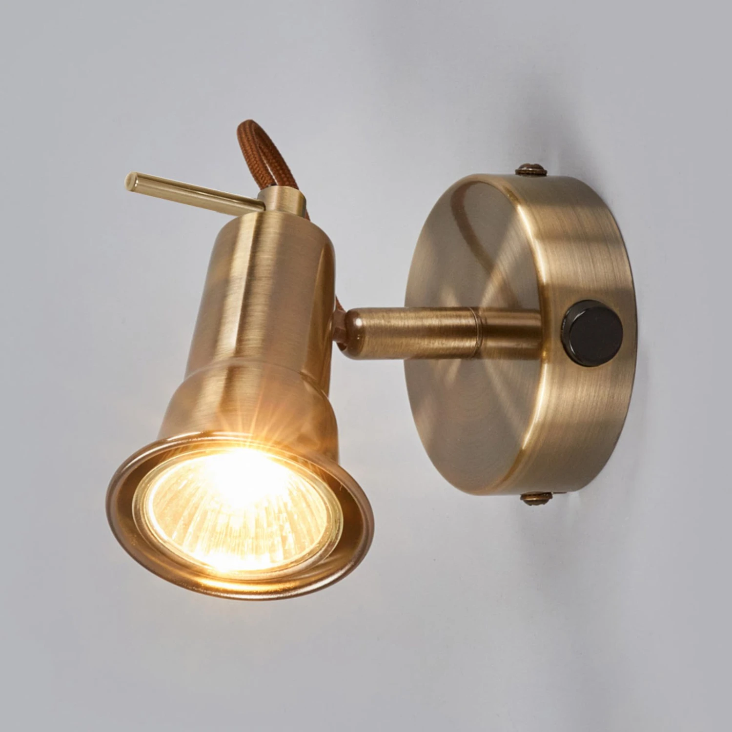 Dieser stilvolle Wandstrahler beleuchtet Räume auf akzentuierte Weise. Der Strahler ist schwenkbar und kann individuell ausgerichtet werden, um stets optimale Lichtverhältnisse zu schaffen. Das runde Design in Altmessing setzt dabei klassische Akzente, sodass der Wandstrahler in unterschiedlichen Einrichtungsstilen den passenden Platz findet.