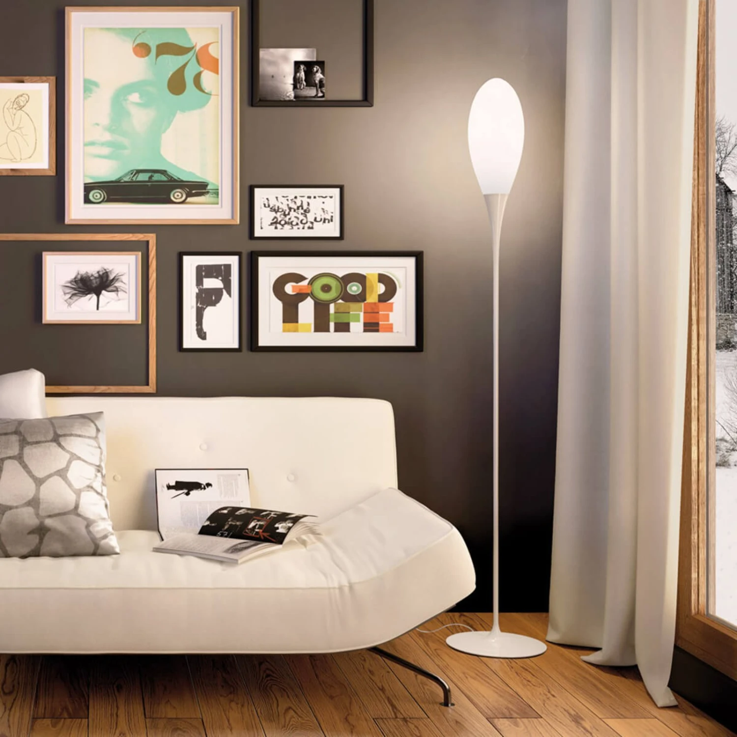 Schlank und schön – das ist die Designer-Stehleuchte Spillo. Dieses extrem hochwertige und zeitgemäße Modell aus dem Hause Kundalini wurde in detailverliebter Handarbeit gefertigt und überzeugt auf allen Ebenen. Das Highlight dieser gleichermaßen schlichten und schmückenden Stehleuchte ist der ovale Diffusor aus Polyethylen. Dieser sorgt dafür, dass die Leuchte richtig strahlt und das Licht gleichmäßig verteilt wird. Abgerundet wird das Gesamtbild durch ein pulverlackiertes Stahl-Gestell. Spillo ist insgesamt 180 cm hoch und damit bestens für hohe Räume geeignet. Diese stilvolle Leuchte kommt besonders gut in einer modernen Umgebung zur Geltung. Dank ihrer schlichten Gestaltung passt sie sich beinahe jedem Stil an und glänzt durch elegante Bescheidenheit.
