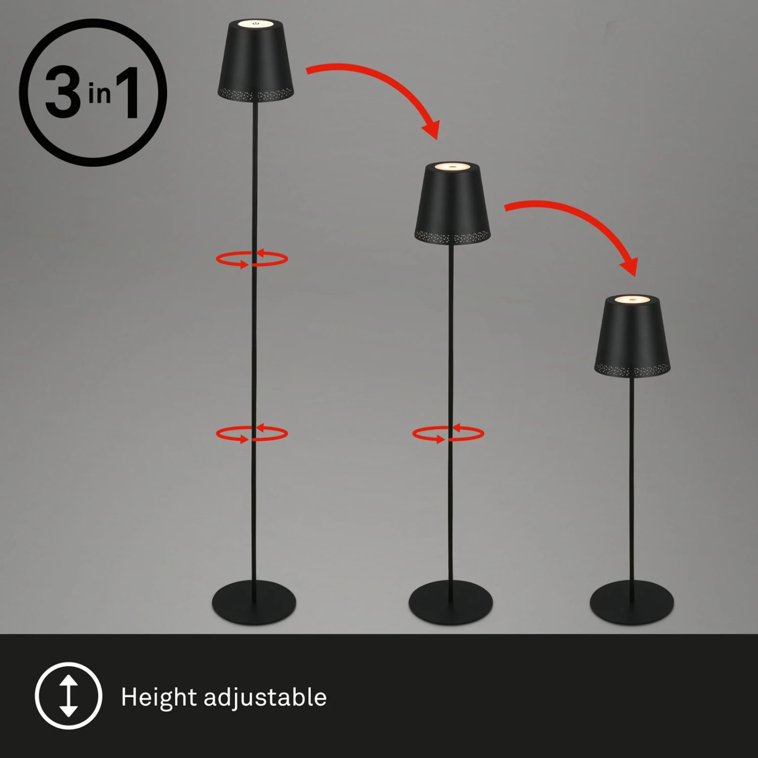 Wiederaufladbare LED-Stehleuchte Kiki – montierbar in drei unterschiedlichen Höhen