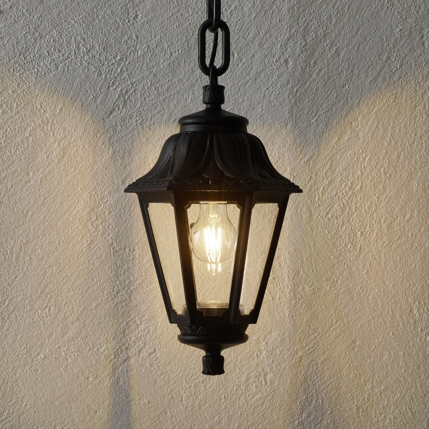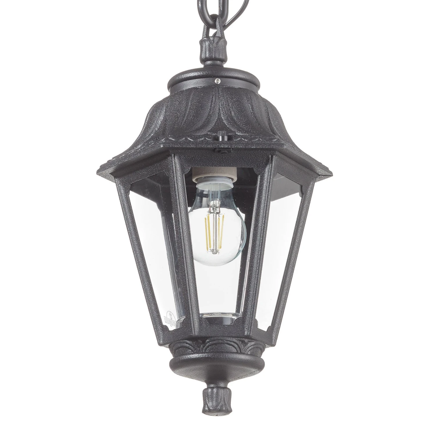 Außen-Hängeleuchte Sichem Anna als Laterne mit klaren Scheiben – inkl. 6 W LED-Filamentlampe