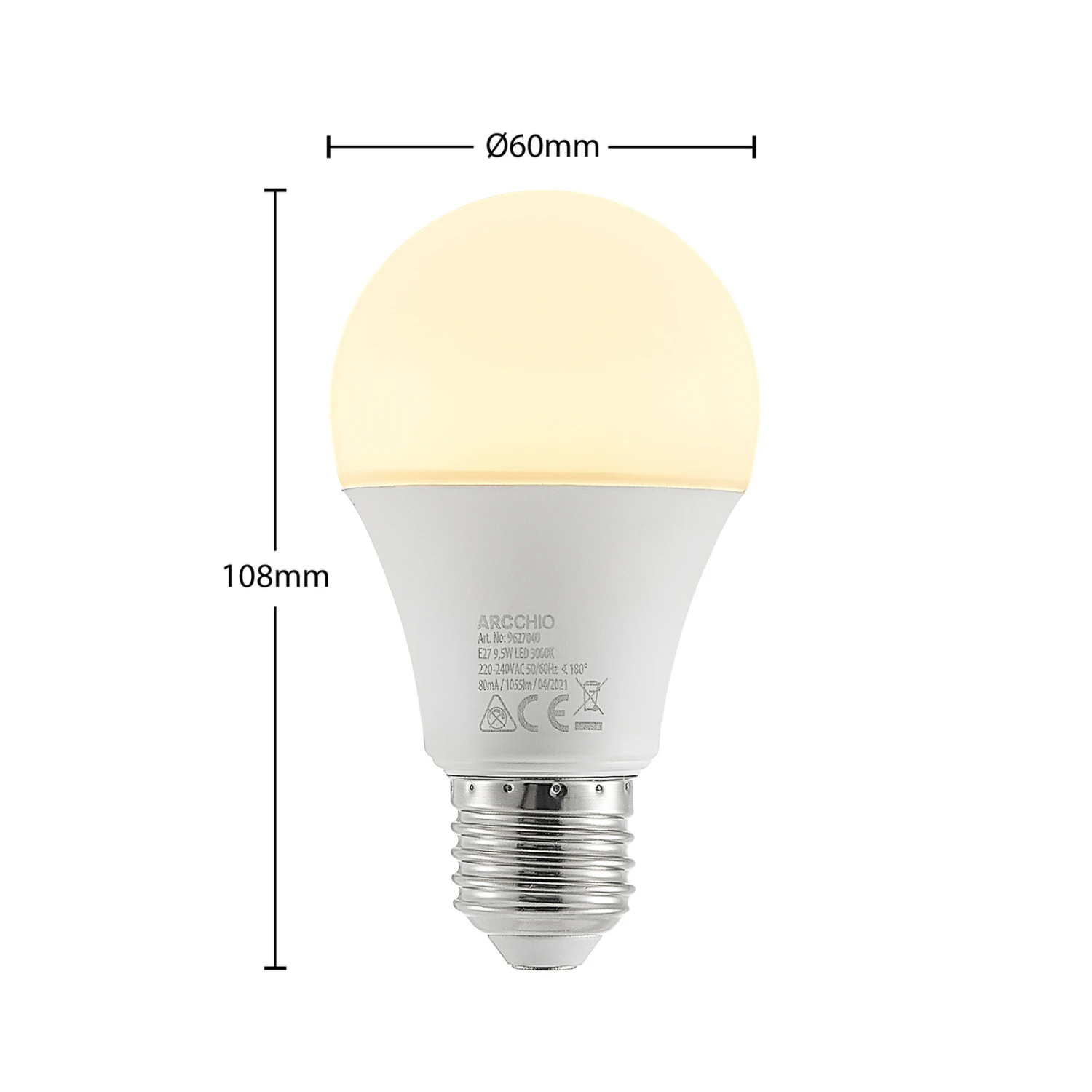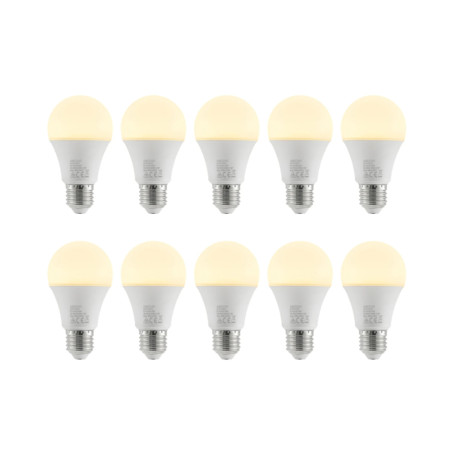 LED-Lampe E27 A60 9,5W aus Kunststoff, opal mit warmweißer Lichtfarbe (3.000 K) im 10er-Set