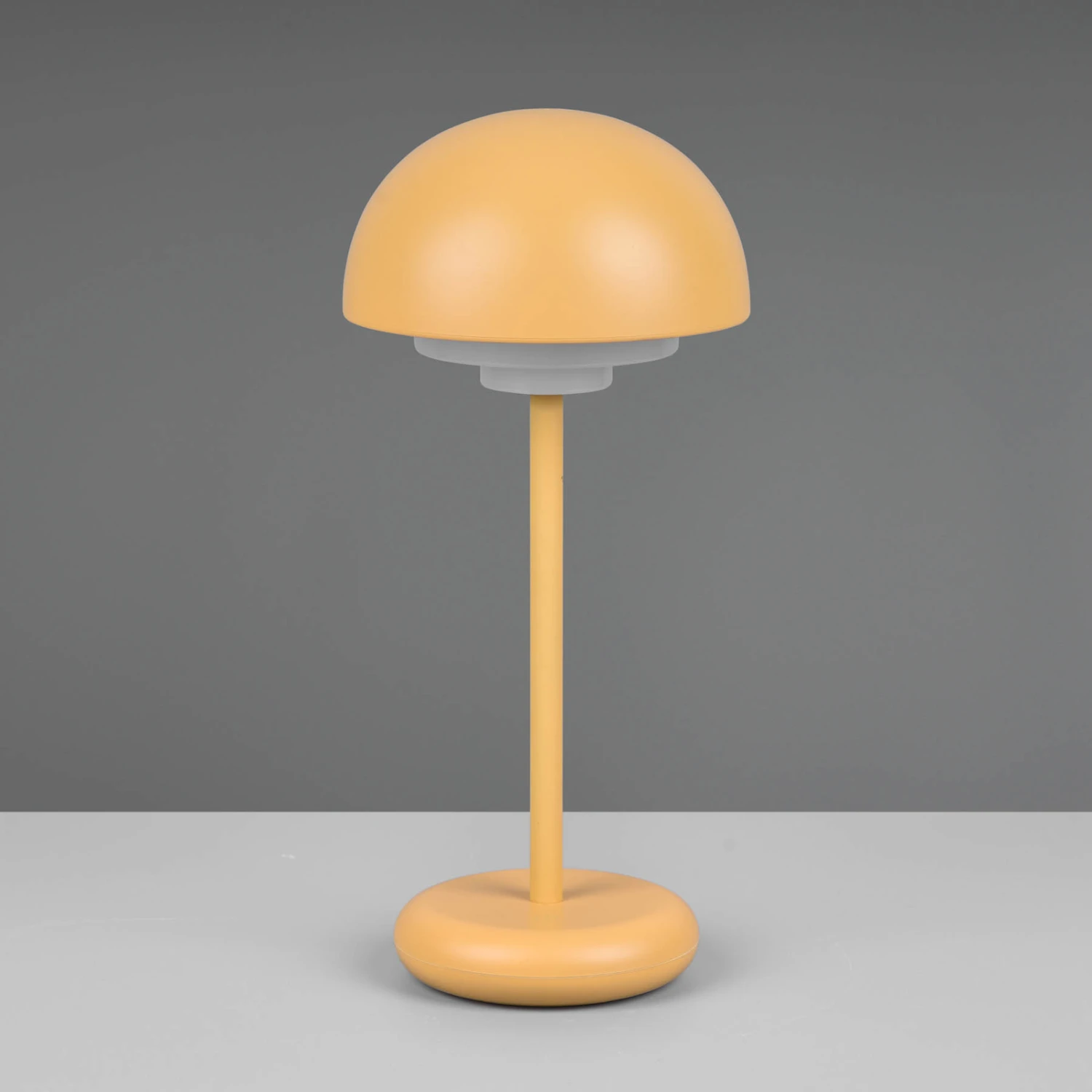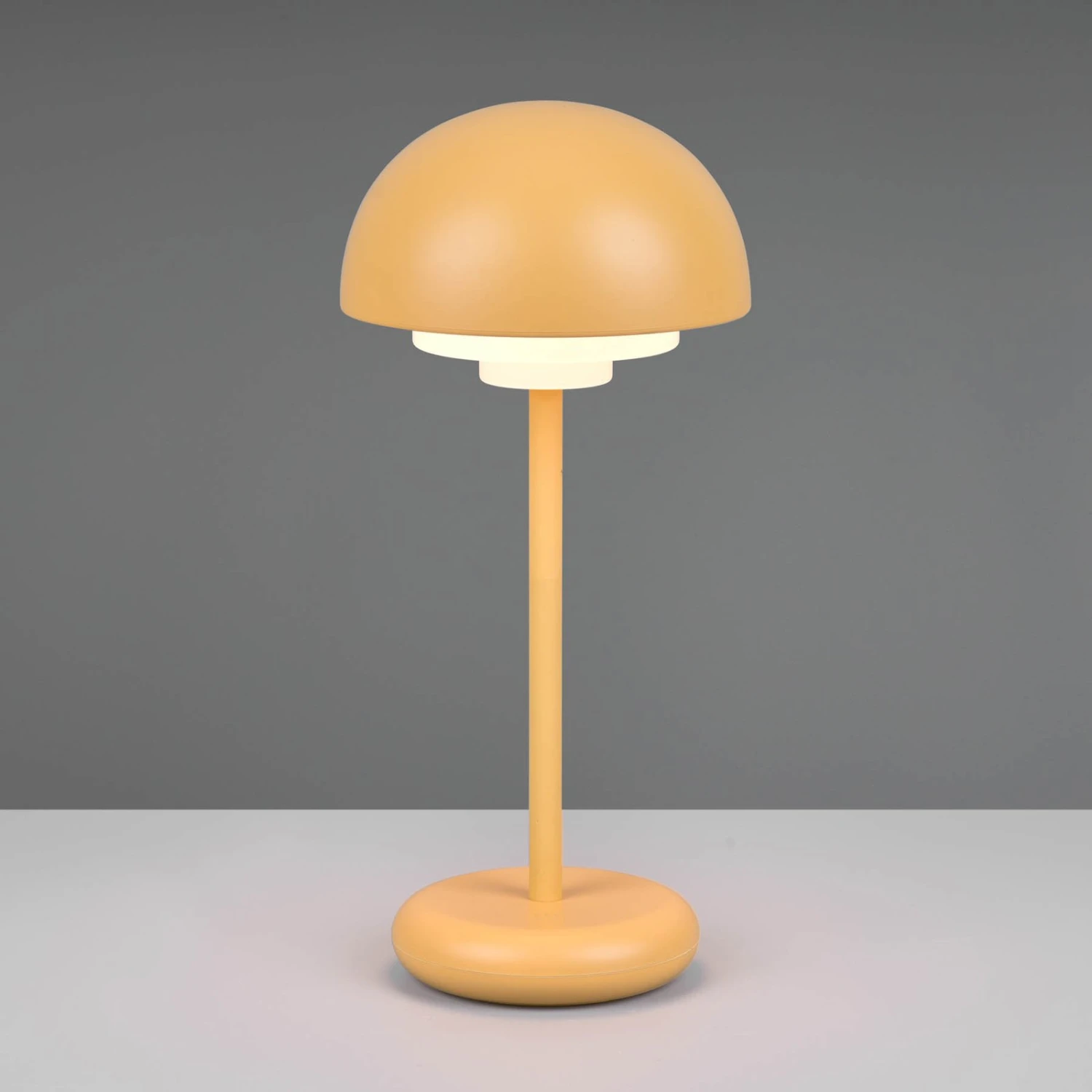 Ein schlichter Schirm in unten offener Halbkugelform mit opalem Diffusor, ein runder Fuß und ein schlanker Ständer bilden die LED-Tischlampe Elliot. Der Spritzwasserschutz und die Ausstattung mit Akku, der über den am Fuß integrierten USB-C-Port geladen werden kann, erlauben den Einsatz als mobile Terrassenleuchte oder bei einer Gartenparty. Die Helligkeit des warmweißen Lichts lässt sich dank der vierfach-Touch-Funktion ganz bequem direkt an der Leuchte steuern. Die Ladedauer beträgt etwa 3,5 h, die maximale Betriebsdauer je Ladung ca. 7 h.