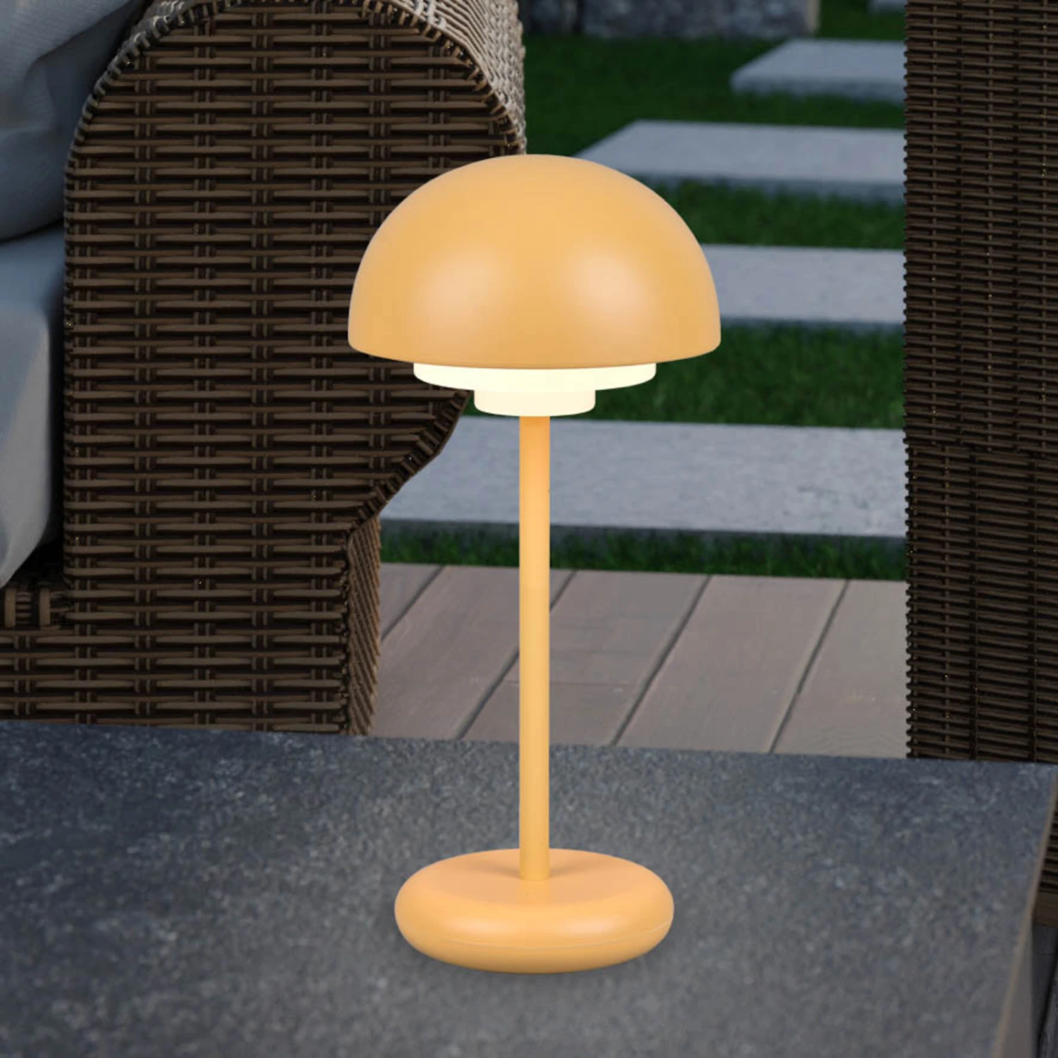 Akkubetriebene LED-Tischleuchte Elliot mit 4-Touch-Dimmer – dekorative Zusatzbeleuchtung für Innen- und Außenbereich