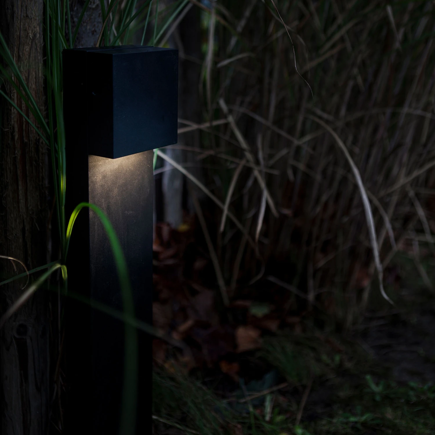 Für den eigenen Schutz und die Sicherheit der Gäste sind Wegeleuchten im Vorgarten und bei Stolperfallen wie beispielsweise Treppen von größter Wichtigkeit. Diesen Zweck erfüllt die Wegeleuchte Gemini XF, die aus schwarzem Aluminiumguss besteht. Im oberen Teil der kantigen Lichtsäule befinden sich warmweiße LEDs, die ausschließlich nach unten scheinen. Durch die geringe Tiefe der Pollerlampe, ist Gemini XF auch ungemein platzsparend.