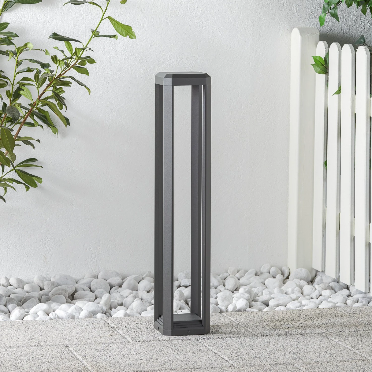 Die modere Wegeleuchte aus Aluminiumguss überzeugt auf den ersten Blick mit ihrem stilvollen Design. So wird nicht nur ein praktischer Lichtspender in die Außenanlage integriert, sondern gleichzeitig auch ein dekoratives Element. Der Leuchtenkörper der LED-Wegeleuchte Logone ist offen gestaltet, was zu einer gleichmäßigen Lichtverteilung zu allen Seiten führt und gleichzeitig für ein hübsch anzusehendes Licht- und Schattenspiel auf dem Boden sorgt. Die integrierten OSRAM-LEDs im Innern der Leuchte überzeugen mit einer hohen Energieeffizienz und einem angenehm warmweißen Licht.