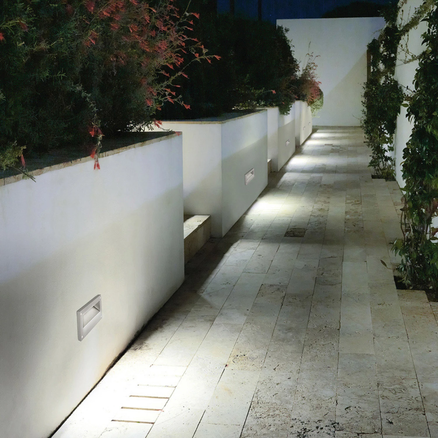 Die Wandeinbauleuchte Micenas aus hochreinem Aluminium und Glas besticht einerseits durch lange Haltbarkeit aufgrund der Materialwahl und andererseits bietet sie mit ihrem hellen Licht in der Lichtfarbe Universalweiß eine adäquate Ausleuchtung rund ums Haus. Sie eignet sich z. B. hervorragend als Lichtquelle im Bereich der Außen-Kellertreppe oder der Garage. Mit Schutzart IP65 (staub- und wasserdicht) ausgestattet.