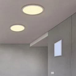 Die LED-Deckenleuchte Planon ist als flaches, rechteckiges und weißes Panel mit Aluminiumrahmen und mattem PMMA-Diffusor gestaltet. Sie dient zur funktionalen und smarten Allgemein- und Arbeitsbeleuchtung mit regelbarer Helligkeit und Farbtemperatur. Die Steuerung erfolgt per App oder Sprachbefehl. Die Einbindung über das Tablet/Smartphone erfolgt dank LEDVANCE SMART+ WiFi-Technologie direkt über das WLAN, ganz ohne Gateway oder Bridge.