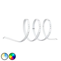 Das LED-Lichtband SMART+ Flex von LEDVANCE besitzt eine RGB-Farbsteuerung. Dadurch sind unzählige Farbvarianten sowie diverse Effekte oder Szenarien über die App programmierbar. Wie wäre es mit einem atemberaubenden Sonnenaufgang? Mit dem LED-Band kein Problem. Neben der Lichtfarbe kann ebenfalls die Farbtemperatur über Tuneable White eingestellt werden. Hierbei kann zwischen einem sehr warmen Weiß (2.000 K) bis hin zu einem kalten Tageslicht (6.500 K) variiert werden. Selbstverständlich ist das LED-Lichtband auch stufenlos dimmbar.