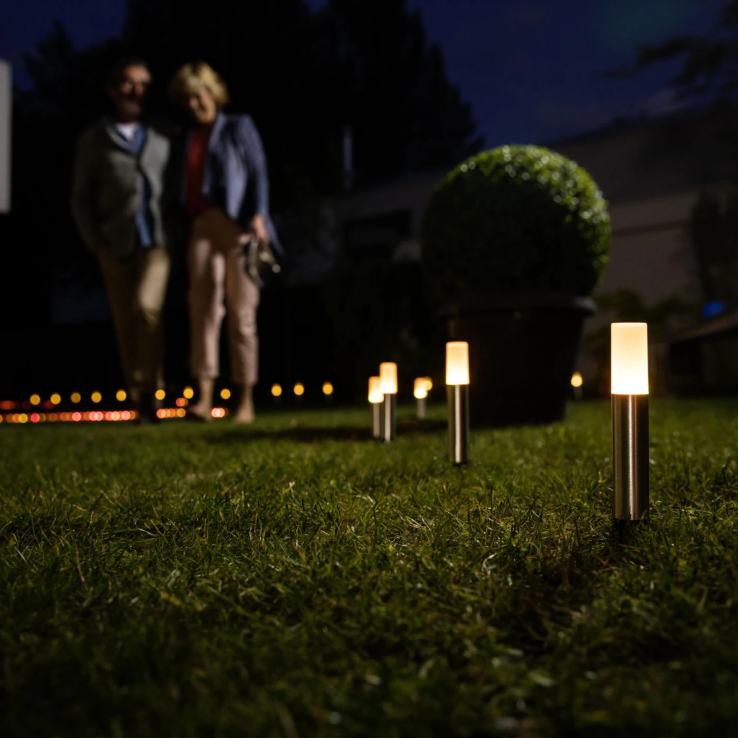 Für eine farbenreiche Garten- oder Wegebeleuchtung: Das Set mit fünf zylindrischen RGBW-LED-Erdspießleuchten verfügt über intelligente ZigBee-Technologie und lässt sich bequem mit dem Smartphone oder einem Tablet-PC steuern. Alles, was dazu benötigt wird, ist ein passendes Gateway und die dazugehörige App – schon lassen sich traumhafte Lichtszenarien für den Garten oder die Terrasse einstellen.