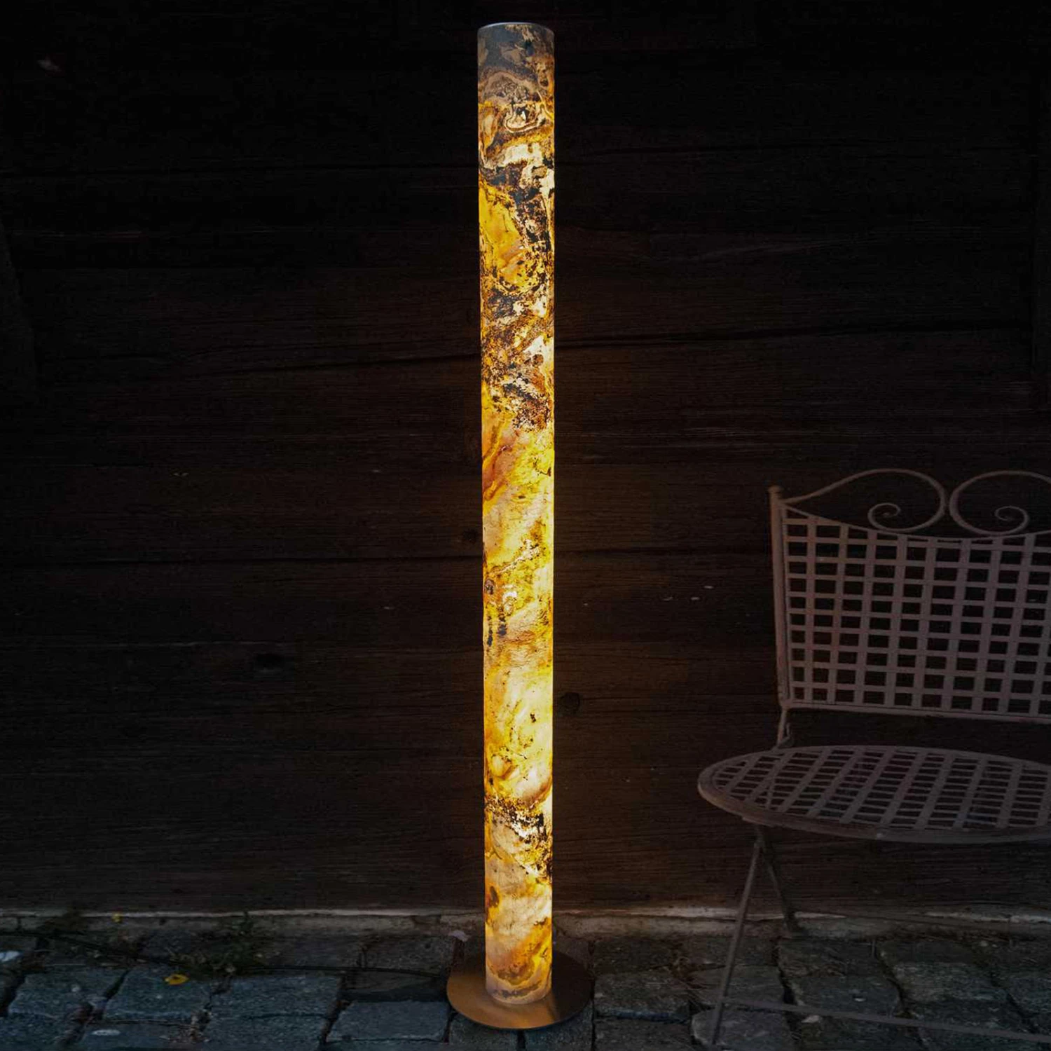 Premium-Stehleuchte Columna mit Schirm aus Steinfurnier