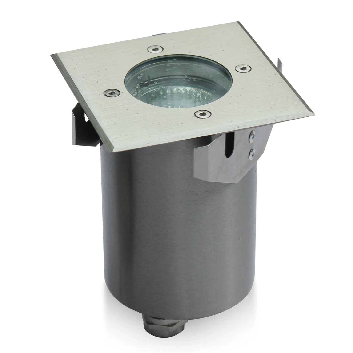 Eckige Bodeneinbauleuchte Ayca aus V4A-Edelstahl, perfekt für den Hof und Einfahrten
