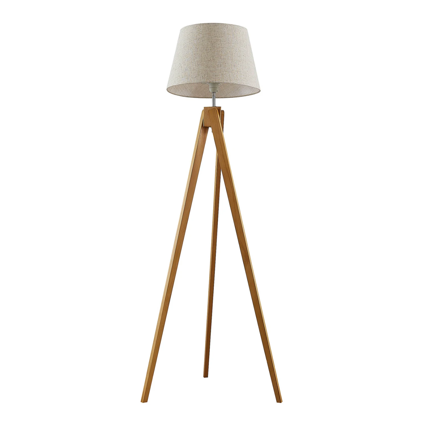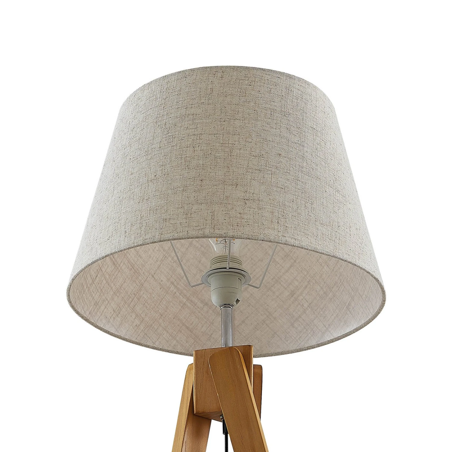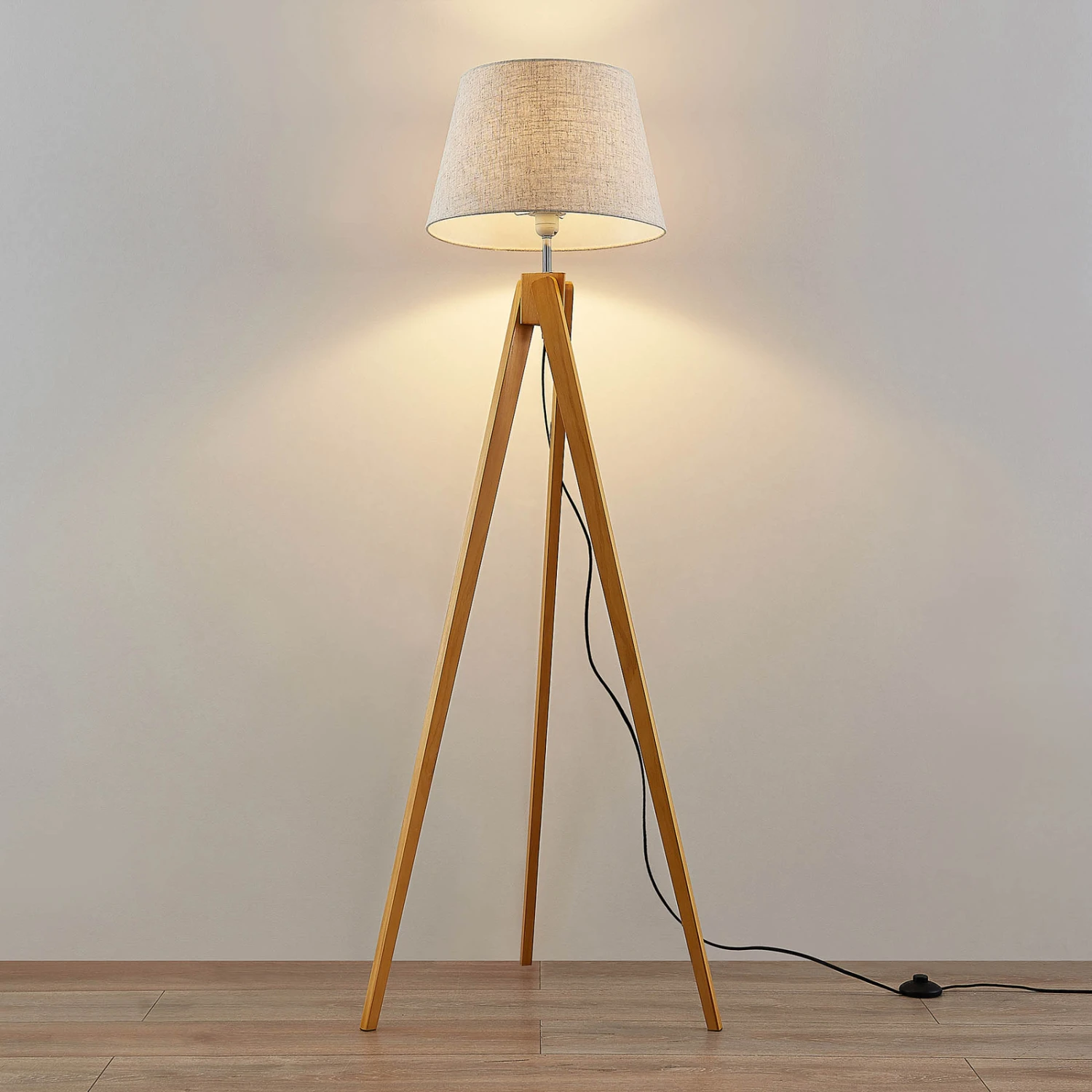 Schöner Lichtspender mit dreibeinigem Holzgestell – die Stehlampe Delara erzeugt gemütlichen Lichtschein