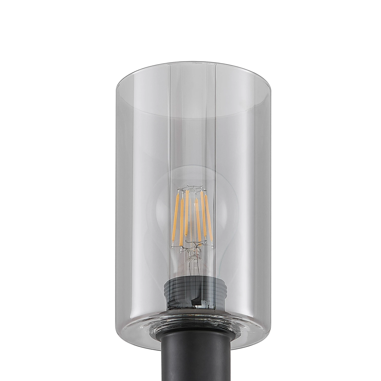 Die Tischleuchte Emavi präsentiert sich in einem dunklen Look und begeistert auf Anhieb. Ihr Gestell wurde aus Eisen hergestellt und mit einem schwarzen Finish versehen, was ihr eine markante Wirkung gibt. Der Leuchtenschirm ist zylindrisch geformt und besteht aus Rauchglas, das zur Zeit im Trend liegt. Emavi ist eine stilvolle Ergänzung für den Wohnbereich und lässt sich mit unterschiedlichen Einrichtungen vereinbaren. Idealerweise sollte für diese Leuchte ein dekoratives Leuchtmittel gewählt werden, um den besonderen Charakter zu untermalen.