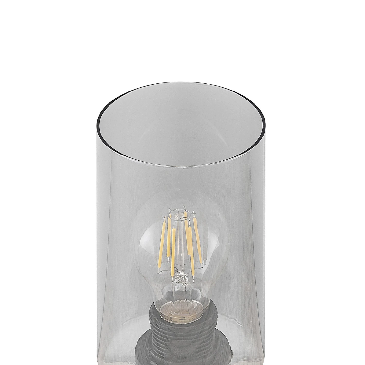 Dunkle Tischleuchte Emavi aus Eisen und Rauchglas