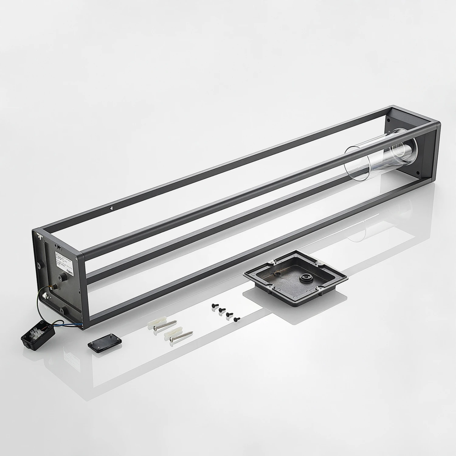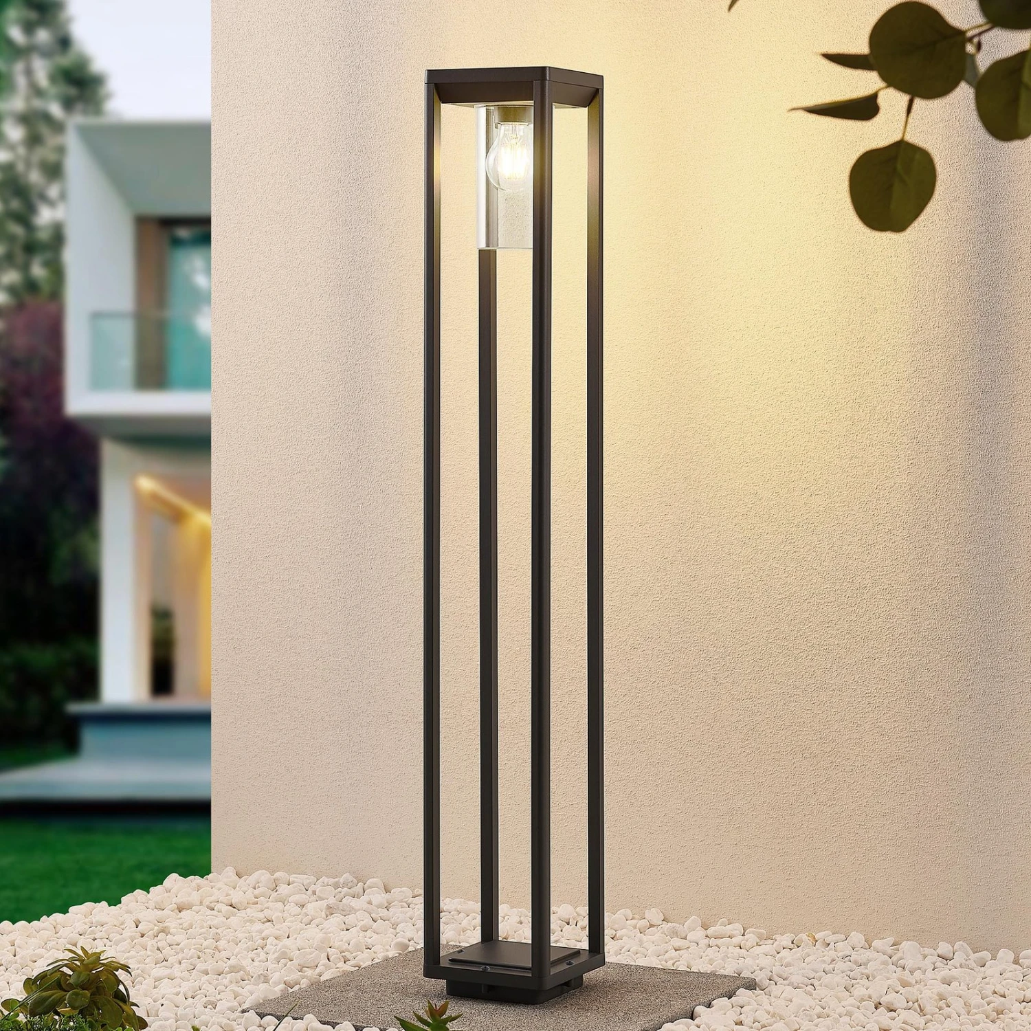 Die Wegeleuchte Estami besticht mit ihrem modernen, gradlinigen Design. Sie wurde aus robustem Aluminium hergestellt und hat die Grundform eines in die Höhe gezogenen Quaders. Die E27-Brennstelle wird von einem zylinderförmigen Schirm umgeben, der aus transparentem Kunststoff hergestellt wurde.