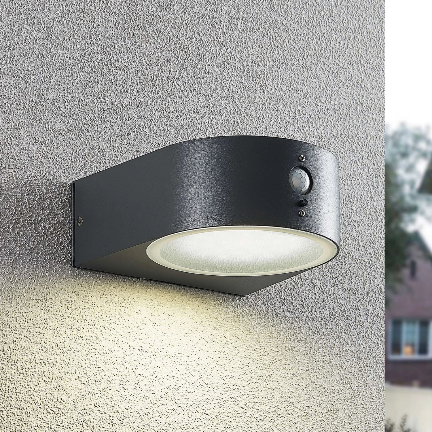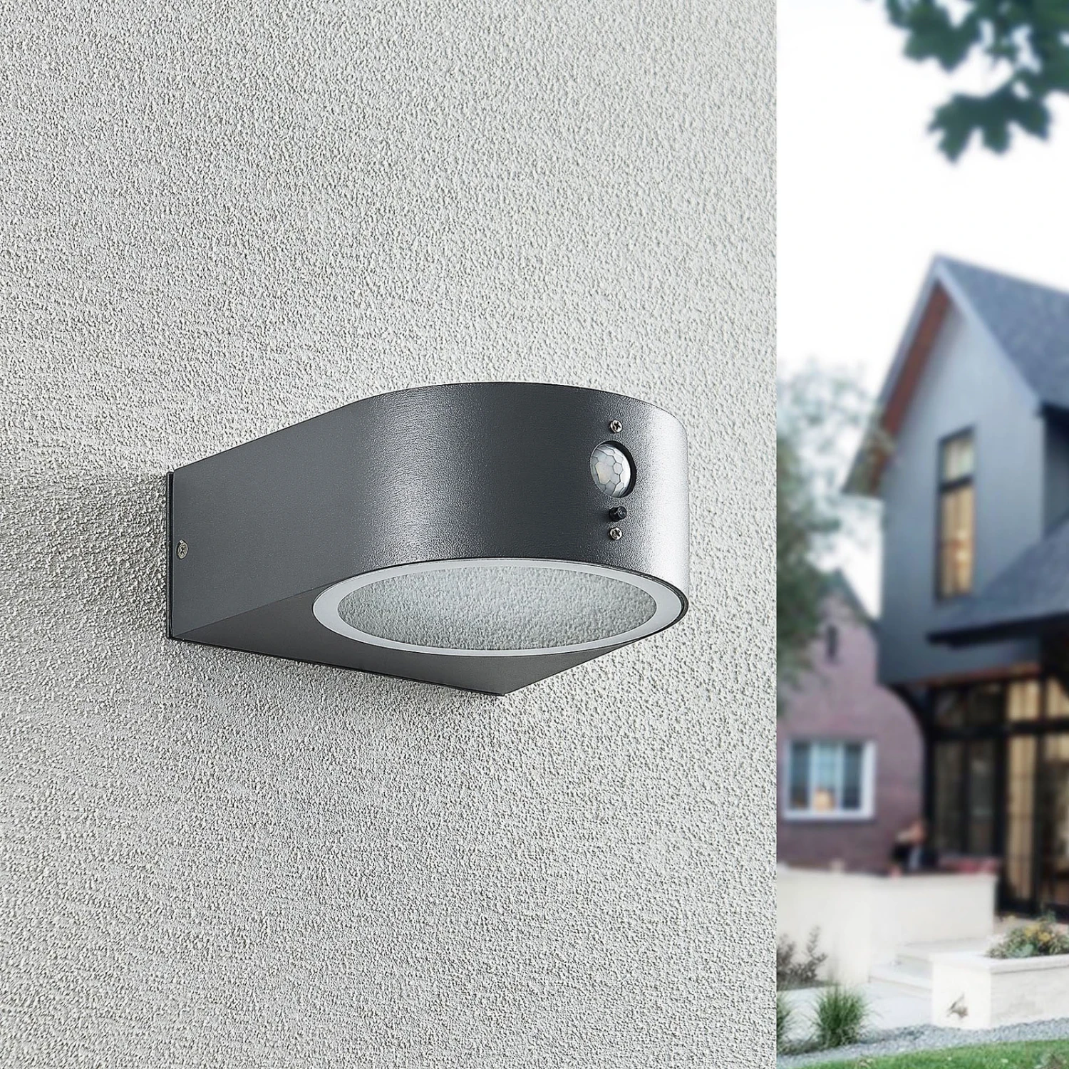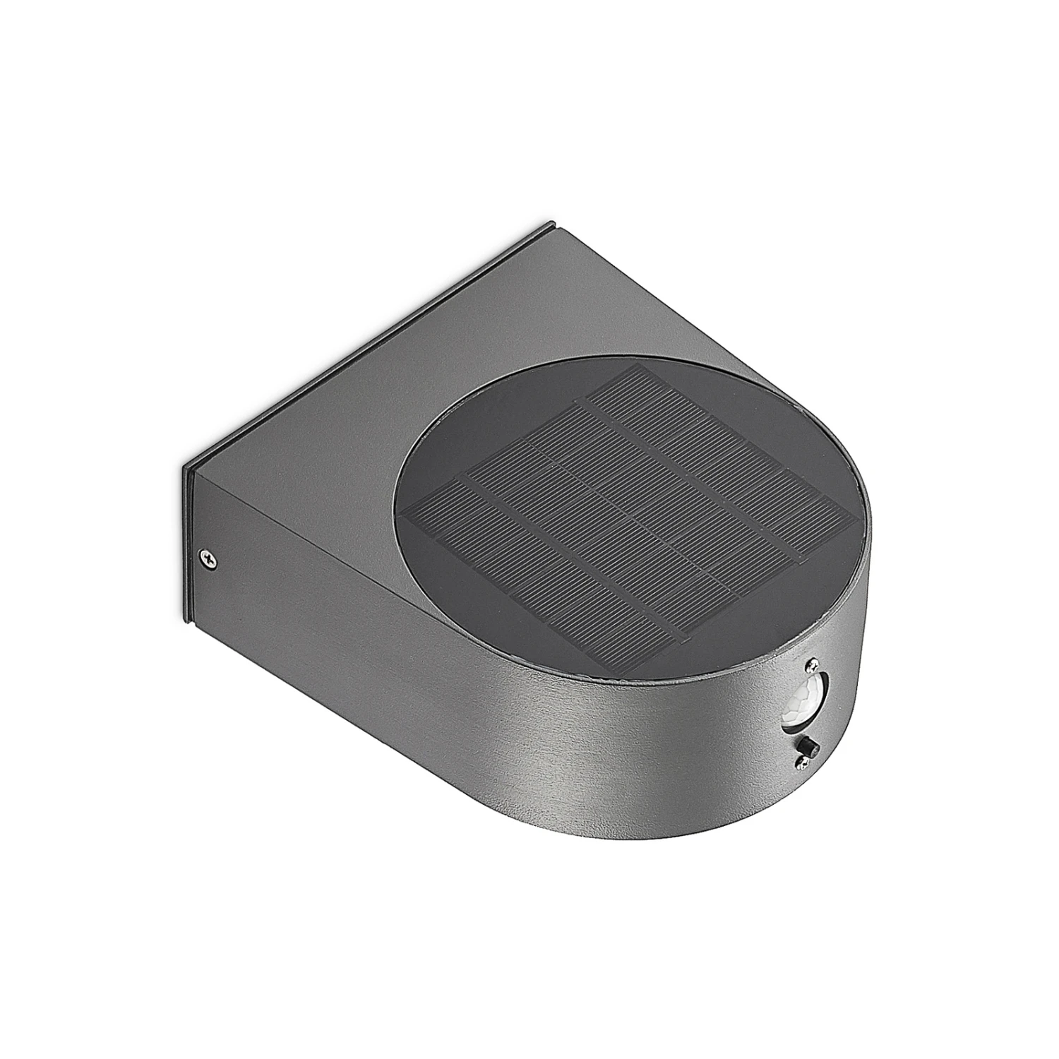 Schlichte LED-Solarwandleuchte Jarik mit Bewegungsmelder in Anthrazit