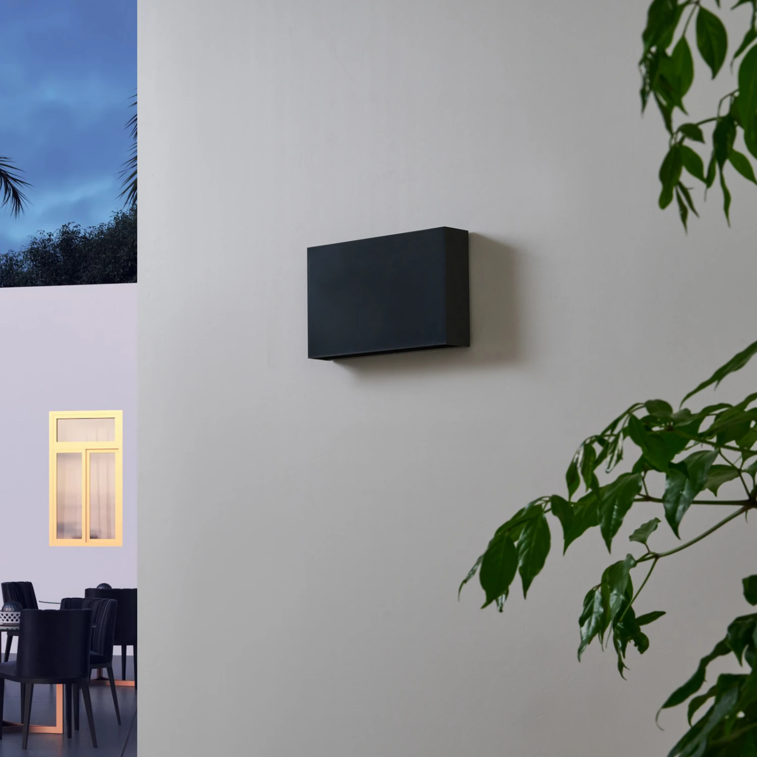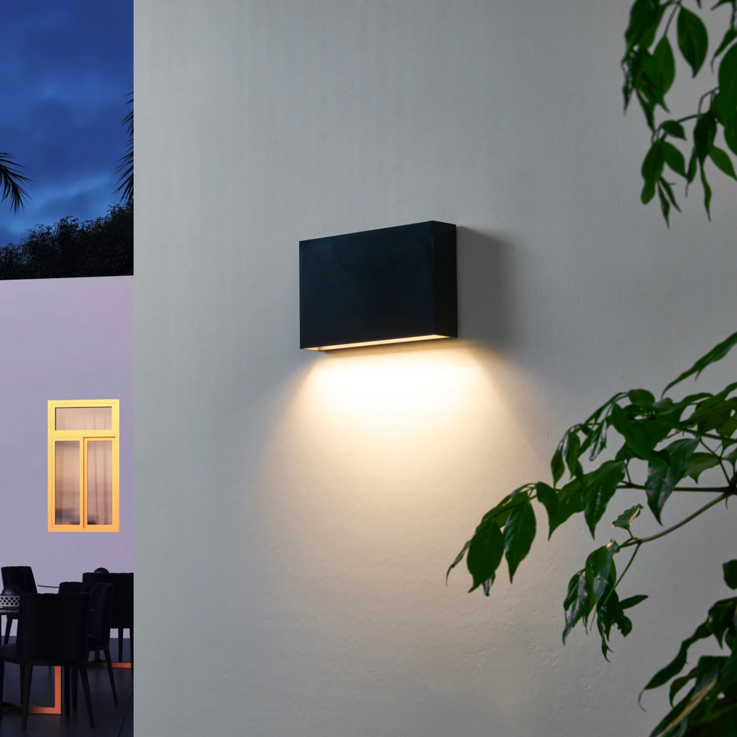 Die Außenwandleuchte Jarte ist aus widerstandsfähigem ABS und Polycarbonat gefertigt und hat einen Stoßfestigkeitsgrad von IK08. Die dunkelgraue Farbe trägt die Kennzeichnung RAL7024. Das warmweiße Licht wird sowohl nach unten als auch nach oben abgestrahlt, wodurch es ein ausgezeichnetes Orientierungslicht in der Dunkelheit ist.