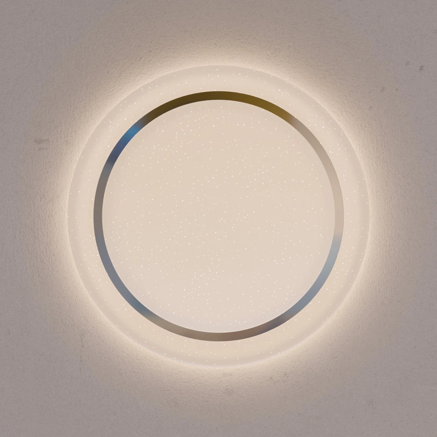 Mizuni ist eine moderne LED-Deckenleuchte die mit ihrem runden, opalweißen Leuchtenschirm besticht, da er schöne Glitzereffekte im Raum kreiert und diesen sogleich aufwertet.