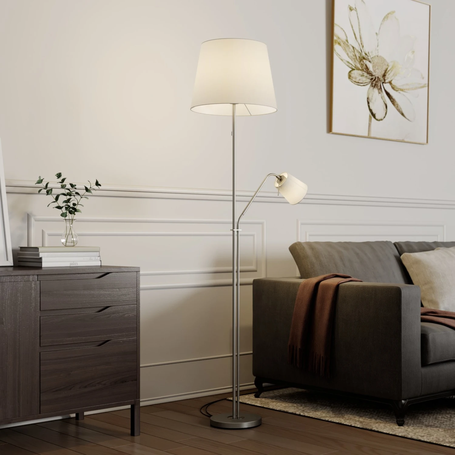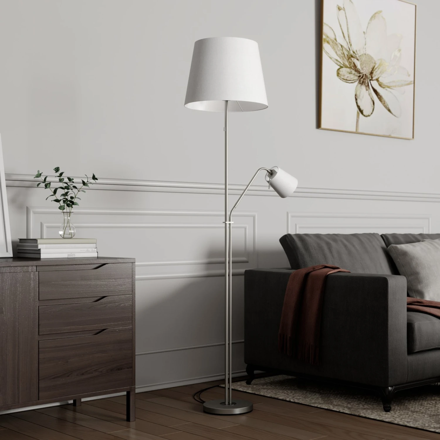 Weiße Stoff-Stehleuchte Nantwin mit integrierter Leselampe