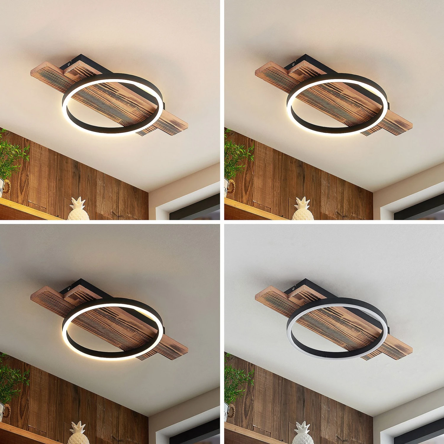 Außergewöhnliche LED-Deckenleuchte Sentoa aus Kiefernholz und Aluminium