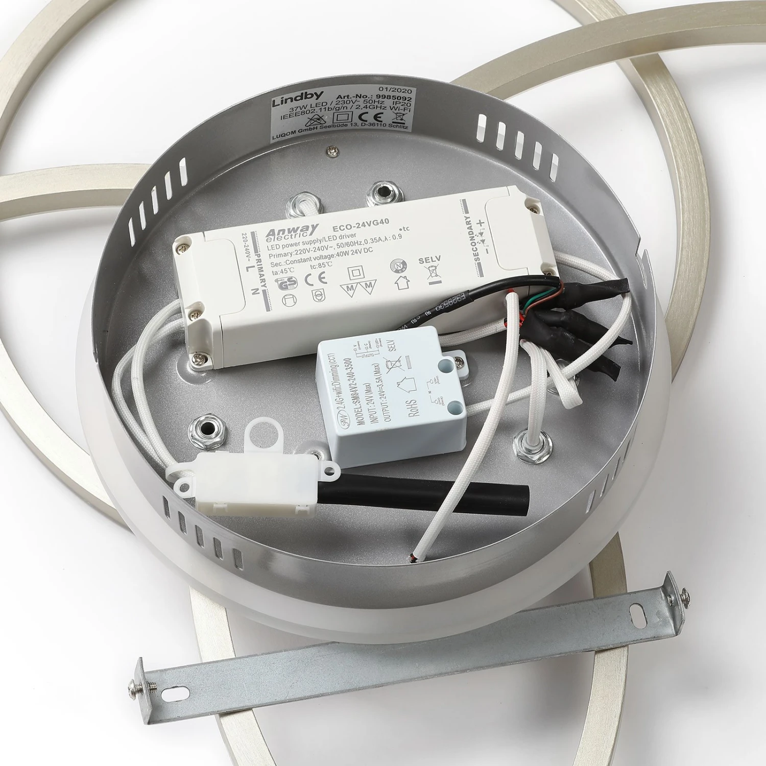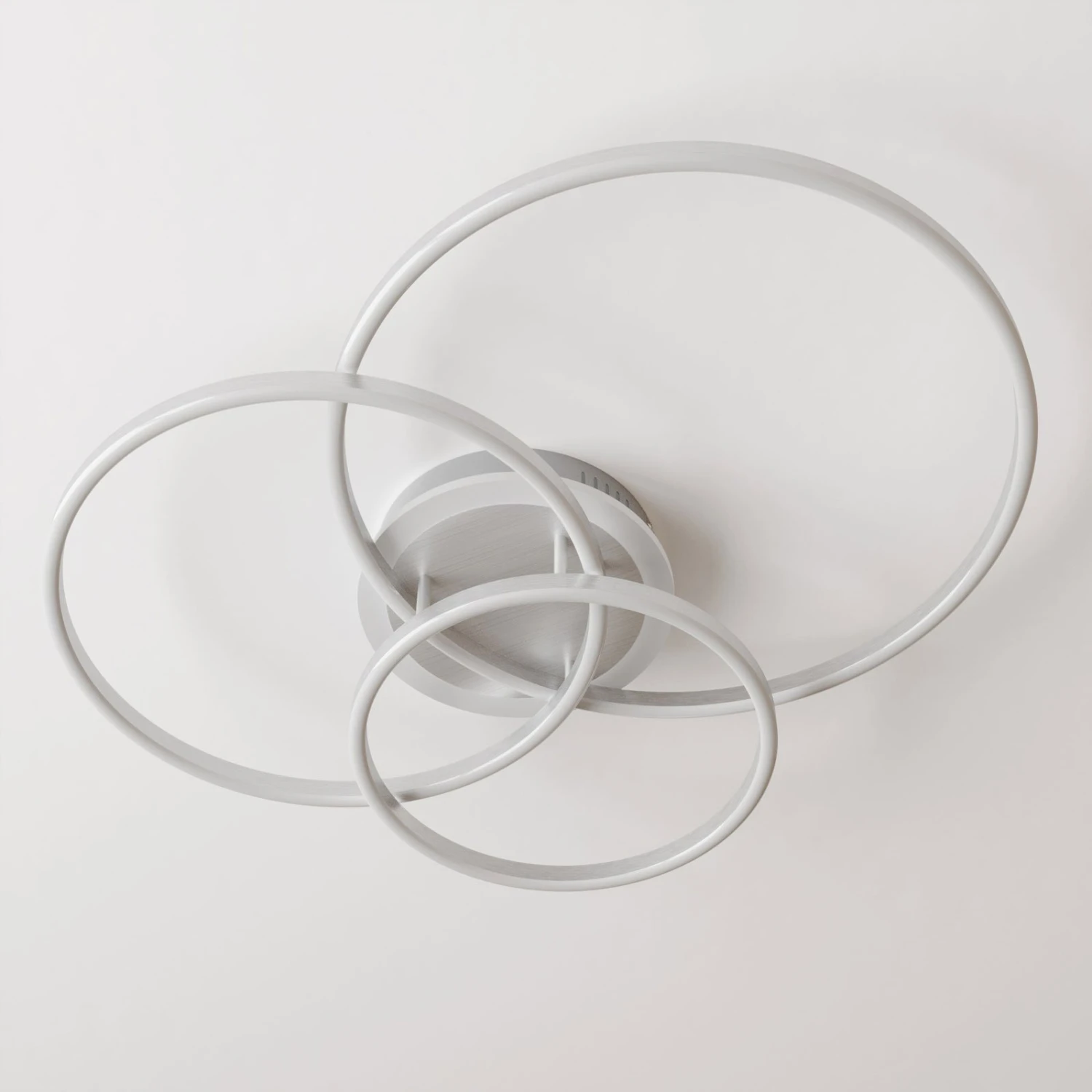 Unterschiedlich große Kreise bilden hier das Grundelement der modernen LED-Deckenleuchte Tula. Sie bietet für Wohnzimmer oder Flur eine zuverlässige Raumbeleuchtung, die zudem dimmbar und in der Lichtfarbe änderbar ist.