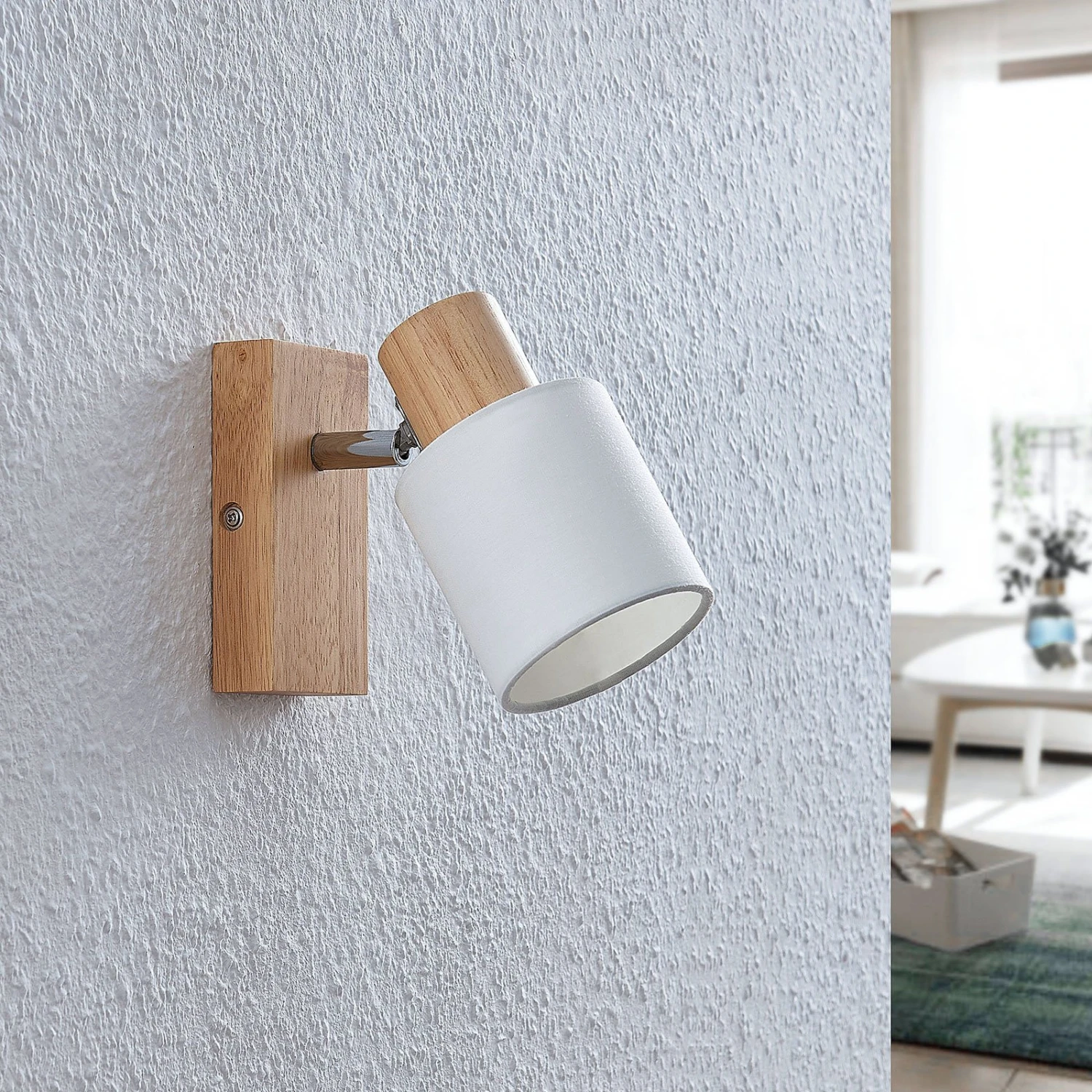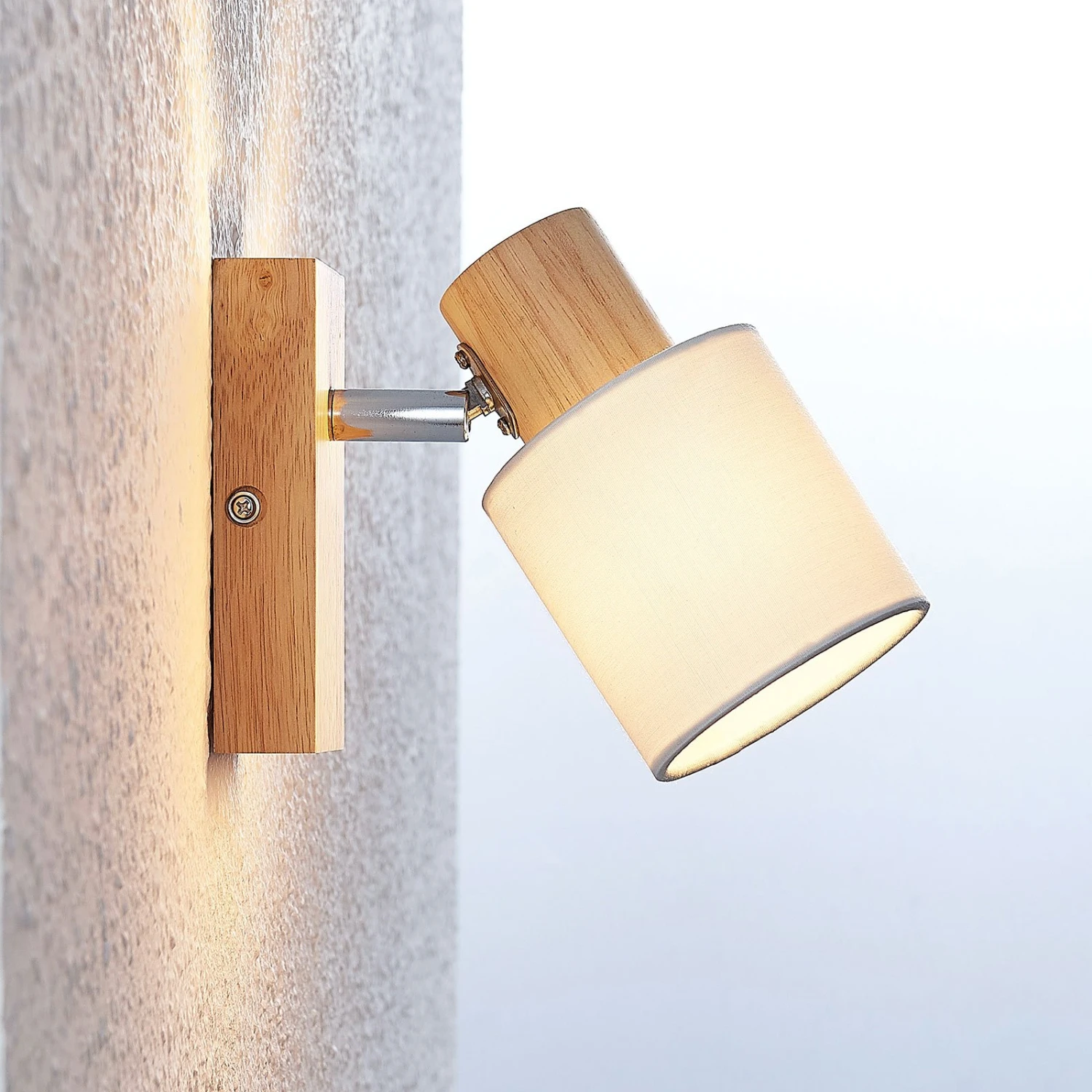 Der einflammige Deckenspot Wanessa ist in einer edlen Kombination aus hellem Holz und satiniertem Weiß ausgestattet. Der Lampenschirm, der das Weiß abbildet, sitzt auf einem Baldachin aus hellem Holz mit schöner Maserung. Der Schirm ist durch ein Gelenk beweglich und kann somit jederzeit in der Ausrichtung variiert und individuell eingestellt werden. Der Deckenstrahler Wanessa kann ebenso an der Wand installiert werden und so als kleine zusätzliche Lichtquelle, zum Beispiel beim Lesen im Wohnzimmer, genutzt werden.