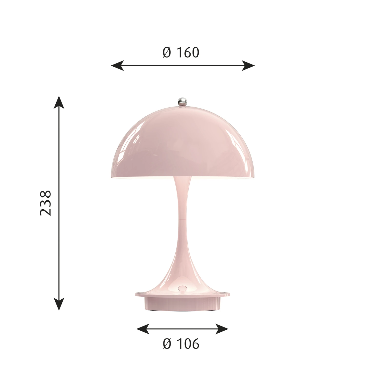 Die LED-Tischleuchte Panthella Portable V2 behält das bereits seit 1971 bekannte und beliebte Panthella-Design, bekommt jedoch auf technischer Seite neues Leben eingehaucht. Zum einen wird nun statt einem fest verbauten Akku auf wechselbare und wiederaufladbare Batterien gesetzt. Diese gehören, neben einem USB-Kabel zum Laden, zum Lieferumfang.