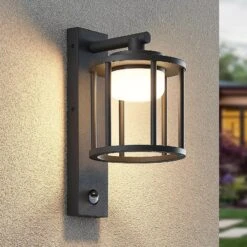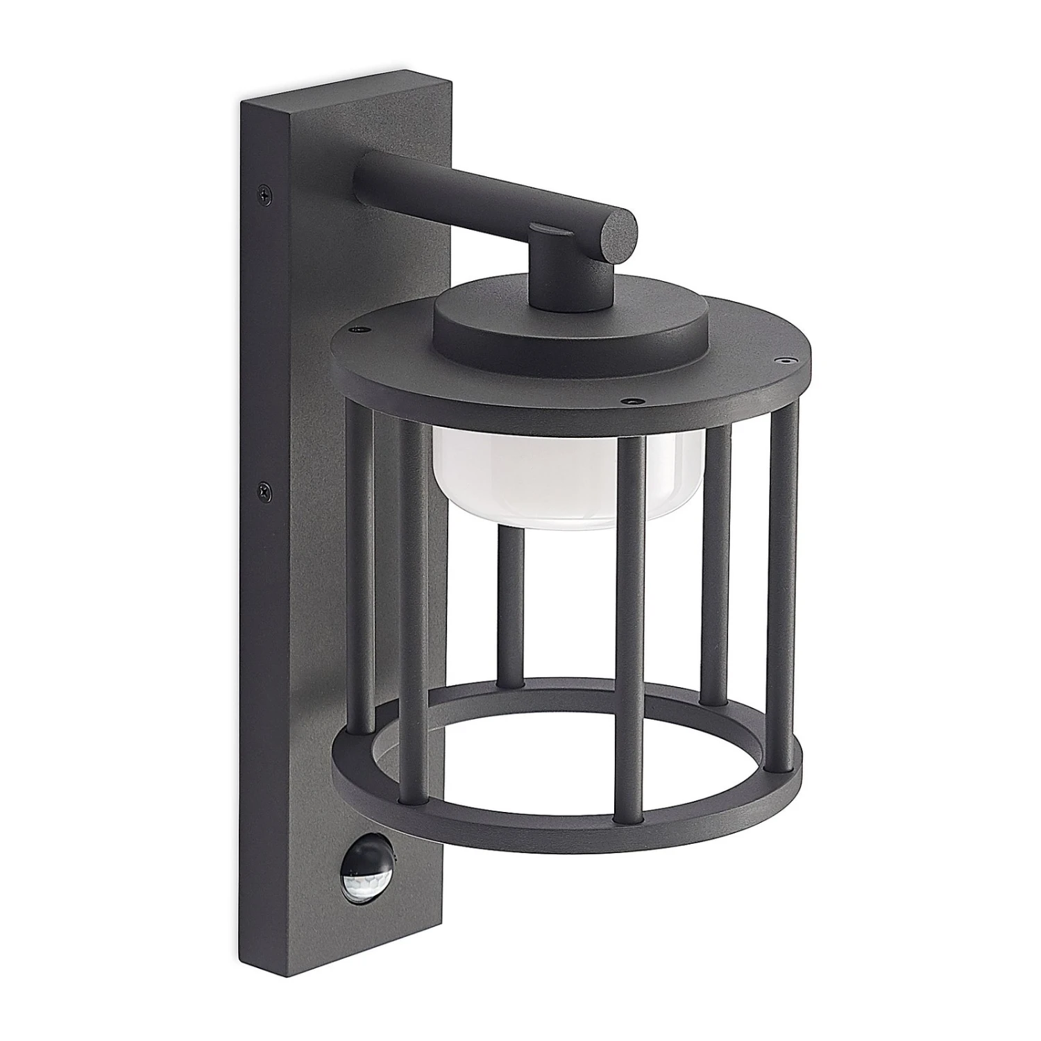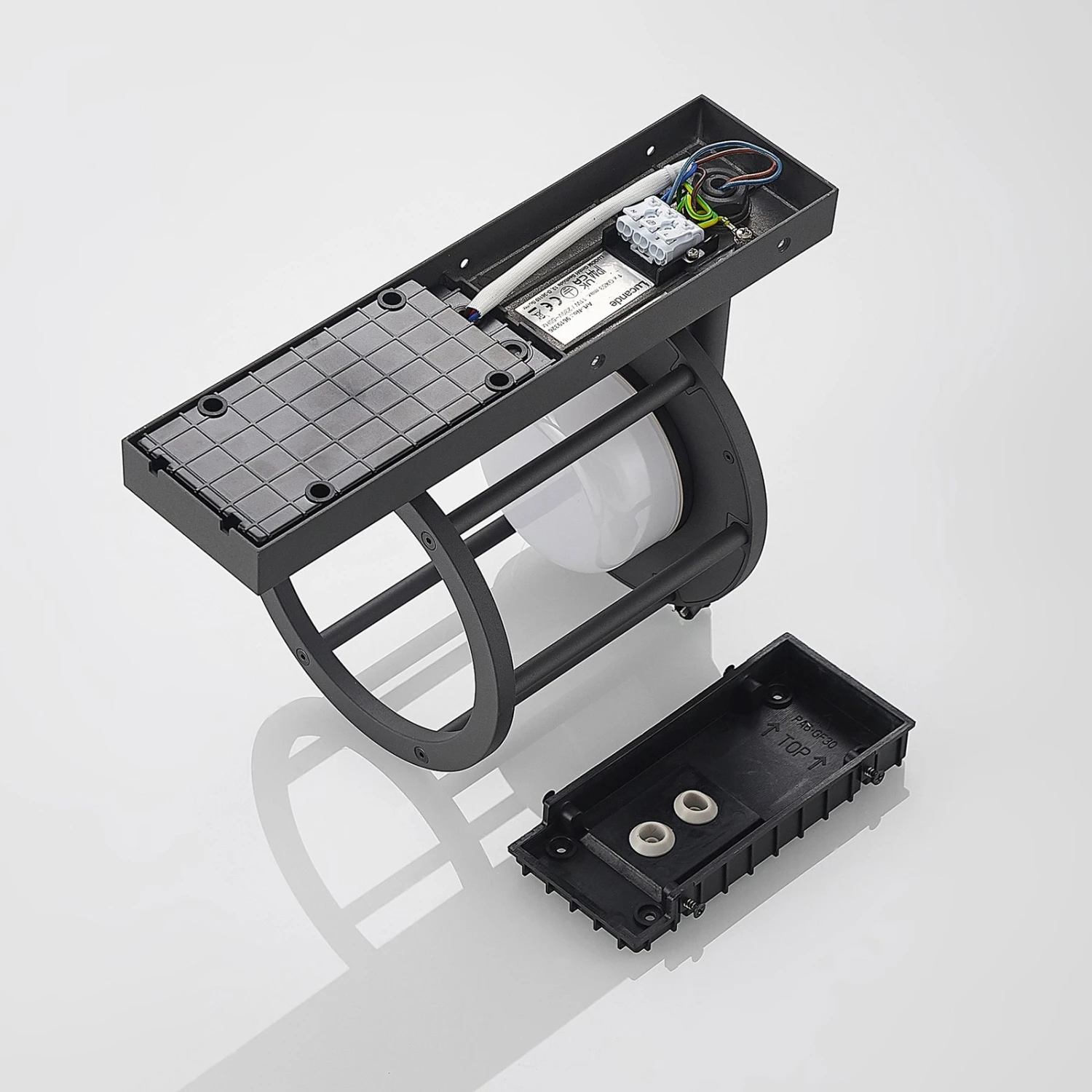 Prägnante Außenwandleuchte Benerike in Dunkelgrau mit Bewegungssensor